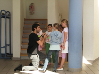 Künstler José Carlos Teixera, Lehrerinnen Stephanie Wimbert und Eve-Marie Hörtig, Klasse 4 a