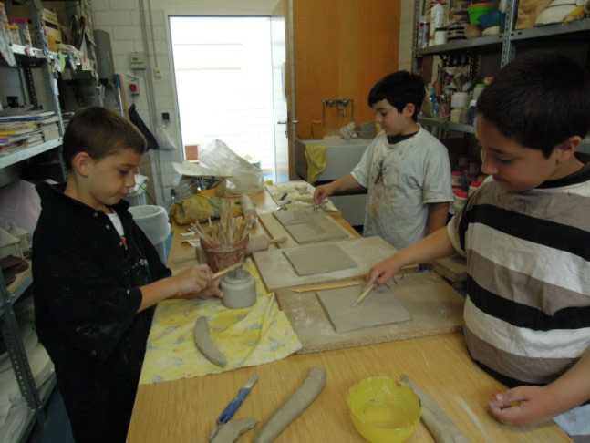 Zunächst fertigten die Schüler Bleistiftskizzen an, die dann an der Tafel zusammengefügt wurden. Anschließend ging es in Kleingruppen in den Tonraum. Dort wurden die Tonfliesen hergestellt. Da bei war es die Aufgabe der Kinder reliefartig zu arbeiten, so dass die Tonfliese dreidimensional wirken sollte. Währenddessen wurde in der Klasse ein Forscherheft zum Thema Meerestiere angelegt.