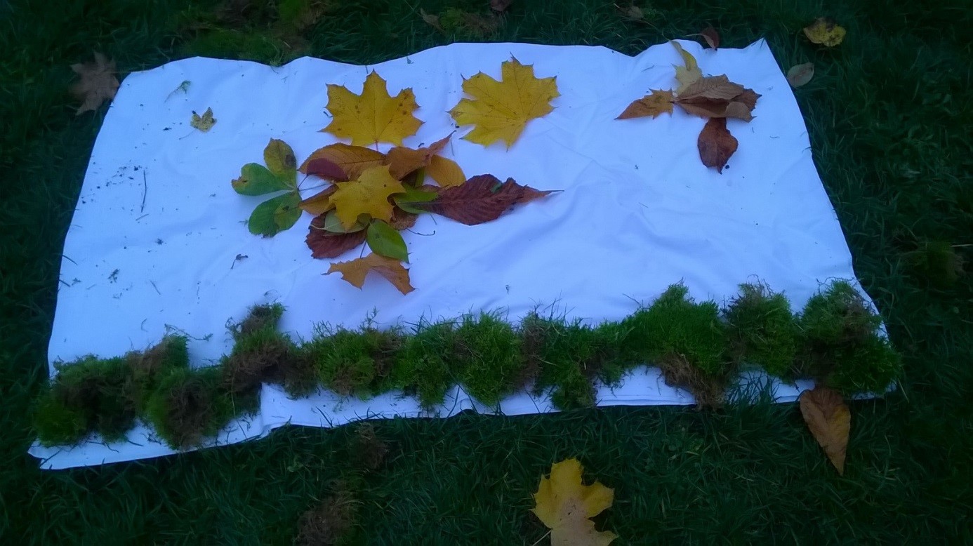 Fliegen ist aber nicht nur Drachen, Flugzeugen oder Papierfliegern vorbehalten. Alle dieser genialen Erfindungen basieren auf dem Vorbild der Natur. So ist beispielsweise der Flügel eines Flugzeuges, dem eines Vogels nachempfunden. Daher ist es nicht verwunderlich, dass eines der Angebote auch unter dem Motto “Alles was in der Natur fliegt“ stand. Inge vom Grafen benannte mit den Kindern Vögel, Schmetterlinge, Blätter und Früchte die von Bäumen fallen. Offenen Auges wanderten die Kinder zum Seilbahnspielplatz und entdeckten und sammelten alles, was ihnen vor die Füße kam, wie zum Beispiel große und kleine Blätter, Zapfen, Stöcke, Moos und vieles mehr. Auf dem hohen Rutschen-Turm des Seilbahnspielplatzes wurde die Ausbeute schließlich auf ihre Flugtauglichkeit überprüft. Zum Schluss wurde ein Bild aus unterschiedlichen Materialien gelegt.
