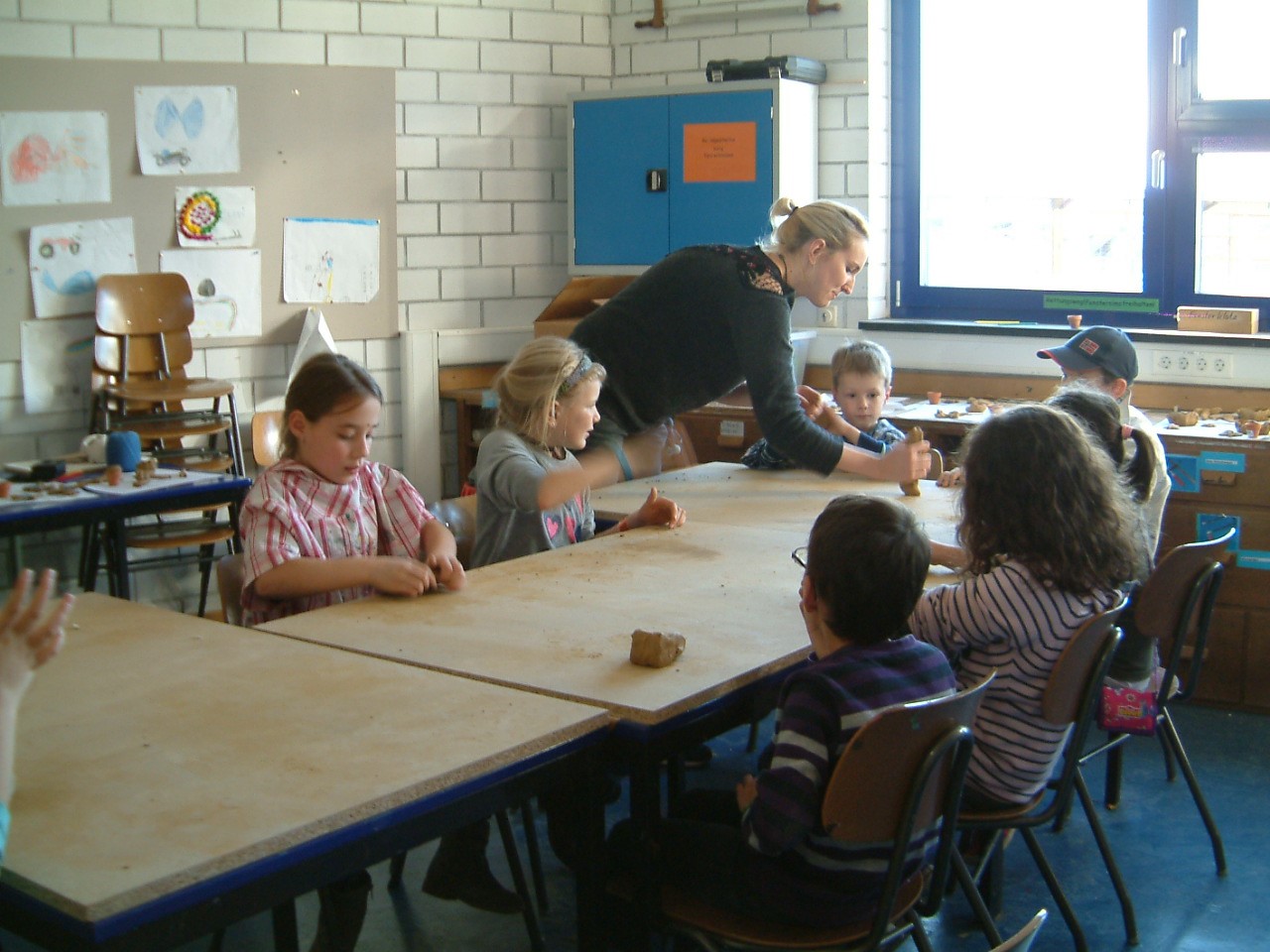 Bei all diesen Aktivitäten durfte natürlich auch das Handwerk nicht zu kurz kommen. Im Angebot „Tonen“ hat jedes Kind unter der Leitung von Lena Stiehle nach einer Anleitung ein kleines Flugzeug getont. Daraus konnte später ein Mobile entstehen. Wichtig war aber, die Kreativität zu entfalten und den Spaß am Handwerk zu entdecken. So durfte jedes Kind zusätzlich zum kleinen Flugobjekt seinen eigenen Ideen freien Lauf lassen.