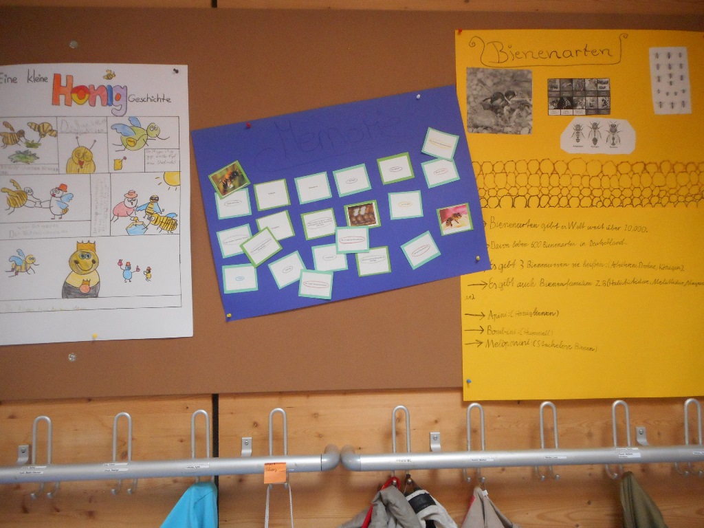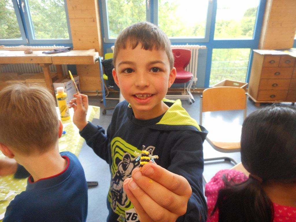 Die Pfingstfeien standen unter dem Thema „Biene“, dass mit einem informativen Programmpunkt eingeläutet wurde. In vier Gruppen konnten sich die Kinder Informationen über die Entstehung des Honigs oder verschiedene Bienenarten holen und allgemeine Informationen bekommen. Dazu wurden im Internet Nachforschungen betrieben, Versuche durchgeführt, Honig probiert und viel gemalt. In einer Gruppe entstand sogar ein informatives Memorie-Spiel, das die Kinder mit nach Hause nehmen konnten. Die Ergebnisse sind bis auf weiteres auf einer Leinwand im Schülerhaus ausgestellt.