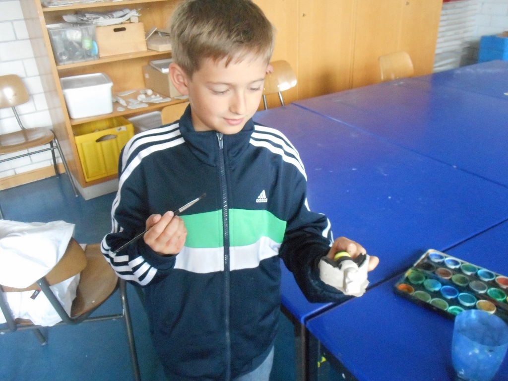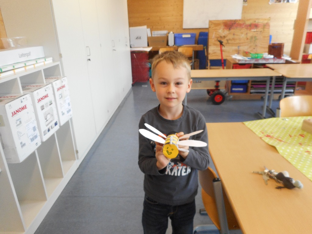 Aus Gipspulver und Wasser rührte jedes Kind seine eigene Masse an, die in Silikonförmchen gegossen wurde. Nach dem Trocknen aus der Form gelöst, konnten die kleinen Bienen bemalt werden.