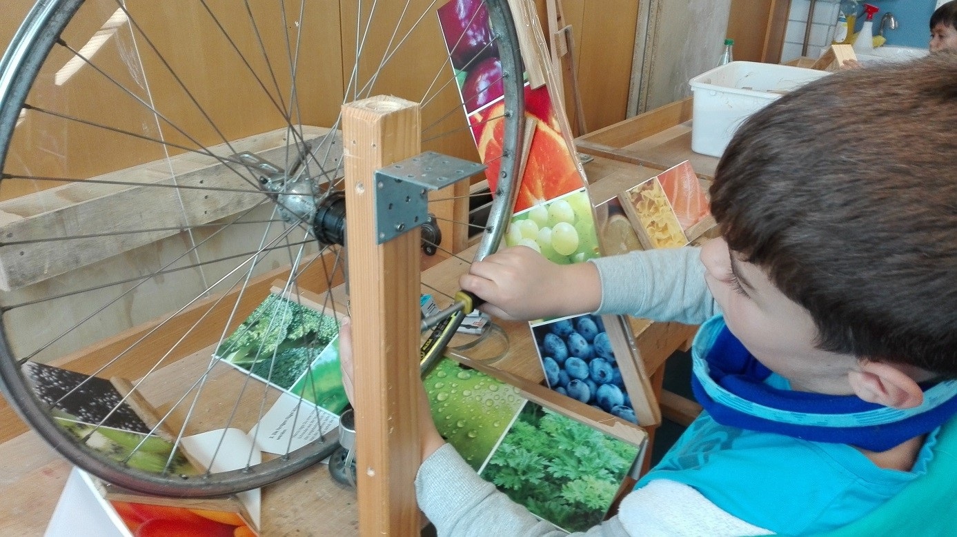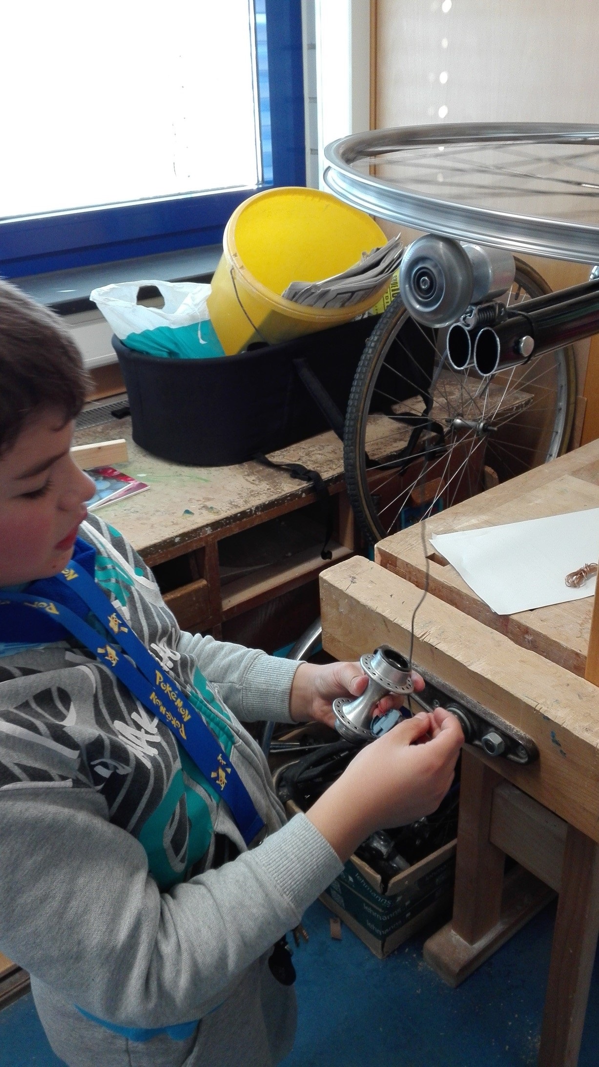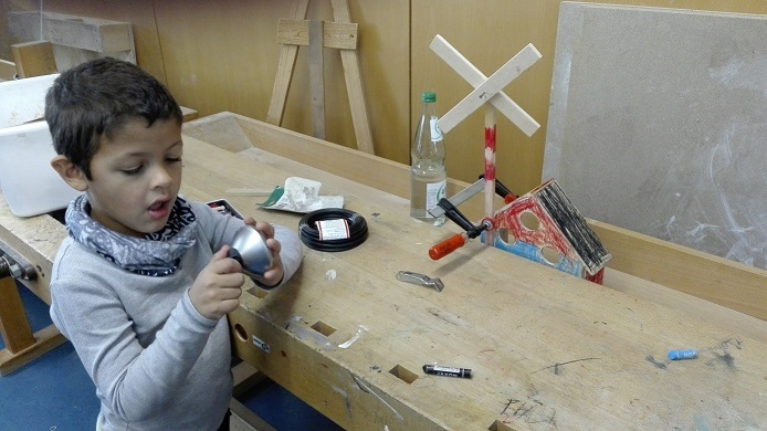 Aus Alt mach Neu, Vorhandenes nutzen, wieder verwenden und umfunktionieren, das war dabei die Devise. Aus einem vom Müll geretteten Rad und anderen Fahrradteilen entstand ein kleines Windrad. Die Kinder haben es geschafft, Material „upzucyclen“ und damit sogar einen Dynamo in Bewegung zu setzen, der Strom erzeugt, um damit alte LED-Taschenlampen zu betreiben. Erste Versuche ohne Wind waren sehr vielversprechend. Die Kinder konnten mit eigenen Händen begreifen, wie Windenergie für die Stromgewinnung genutzt werden kann und wie wertvoll dabei alte, ausgediente Materialien sein können. Gemeinsam mit Frau Dr. Müller-Zastrau wird noch ein geeigneter Platz gesucht, an dem das Windrad aufgestellt werden kann, damit es seine Kraft auch optimal entfalten kann.
