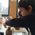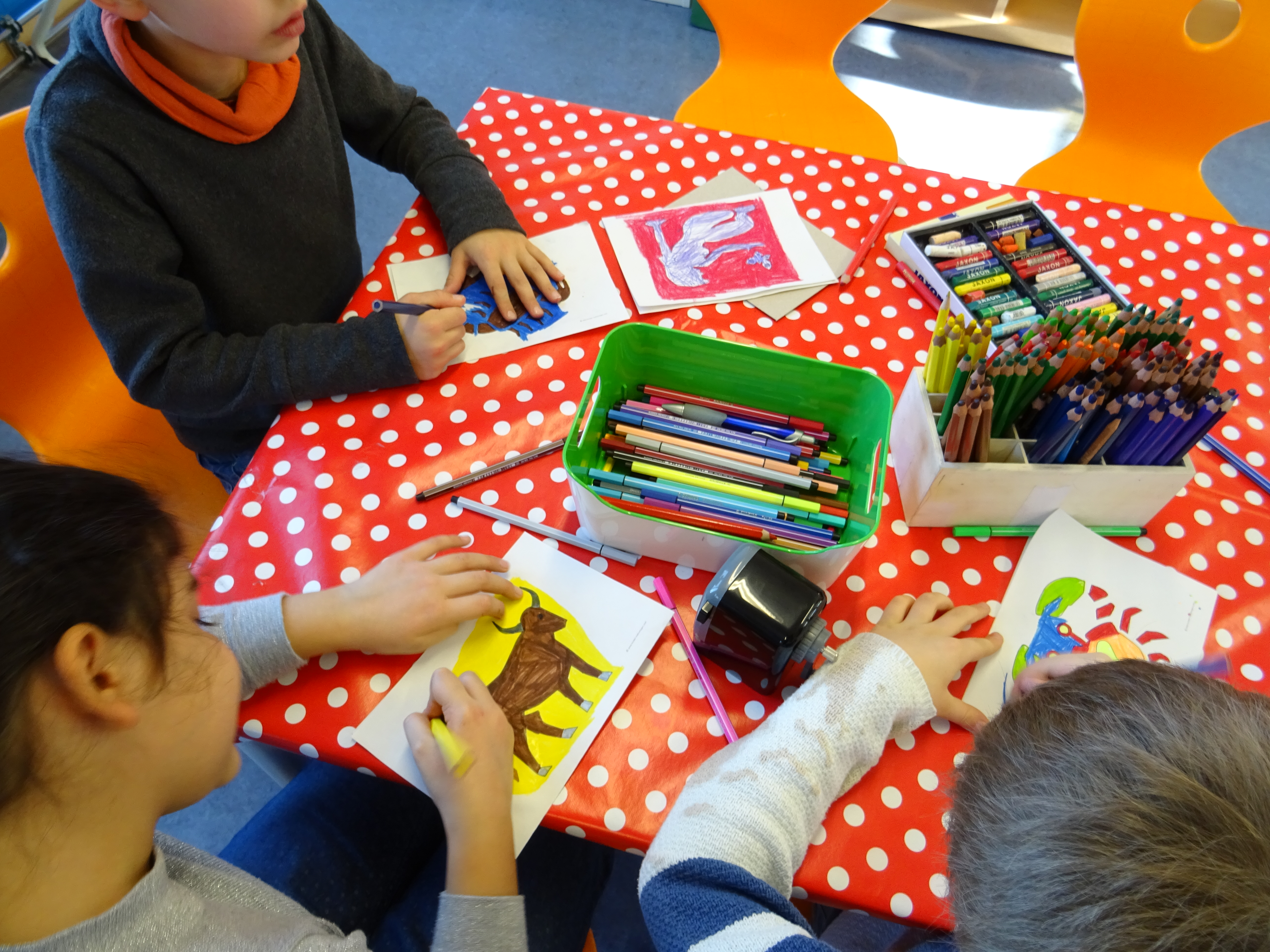 Danach gestalteten die Kinder einzelne Geburtstagskärtchen auf buntem Papier und mit Masking-Tapes. Dies hat großen Spaß gemacht und die Lagen von Papier und Tape wurden auch gern mal etwas dicker, da sich die Kinder bei der schönen Auswahl kaum entscheiden konnten. Die Zeit verging wie im Flug und der Geburtstagskalender war am Ende des Tages noch lange nicht fertig. Von daher werden wir einfach in den kommenden Ferien zum Thema „ Zirkus“ daran weiterarbeiten.