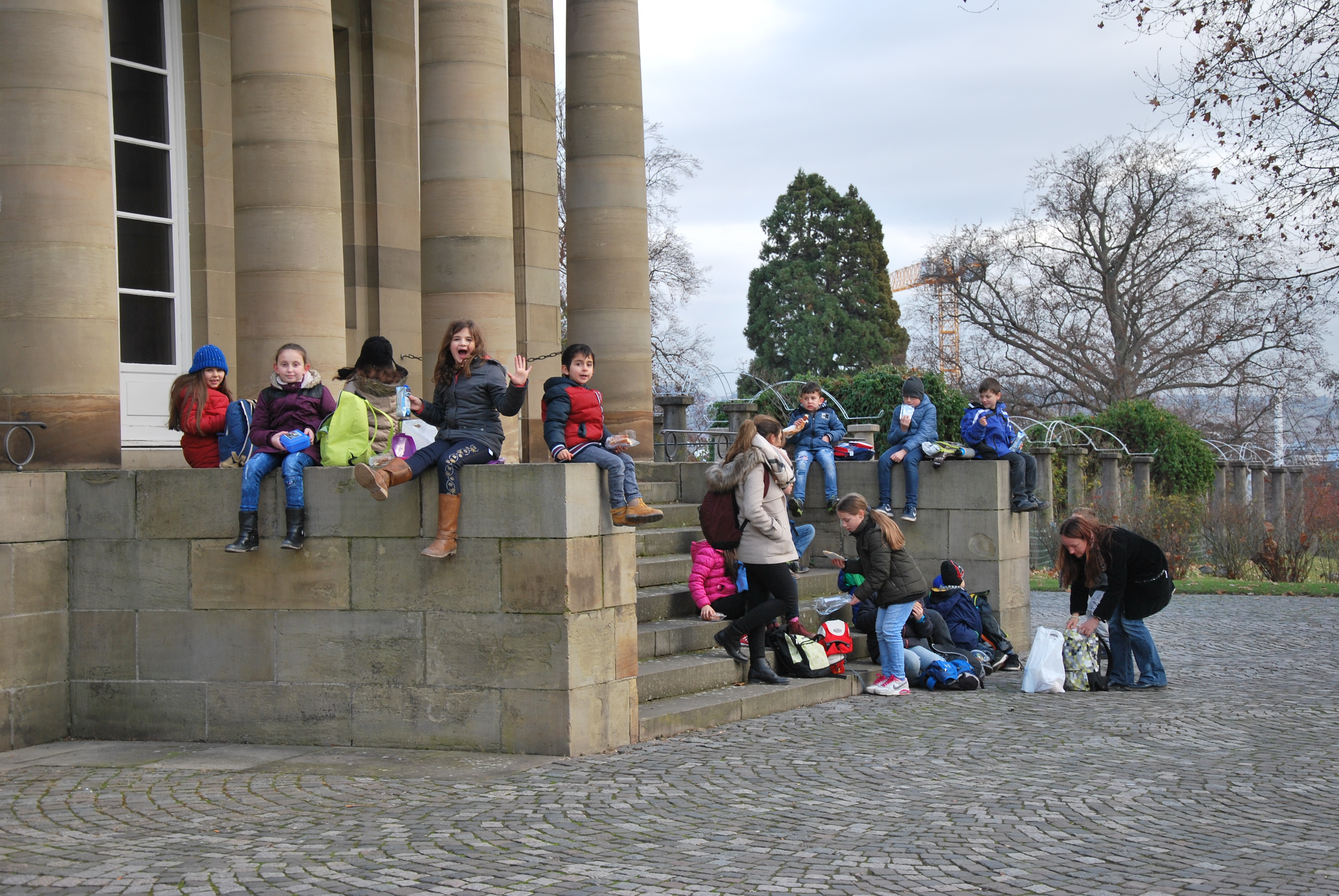 Ziemlich schlau – so machten sich die Reisenden nach dem Flug im Planetarium bei schönstem Sonnenschein auf zum Spielplatz am unteren Schlossgarten. Hier wurde in astronomische Höhen geklettert und danach wanderte die Gruppe tapfer durch den Schlosspark bis zum Nordbahnhof zurück.