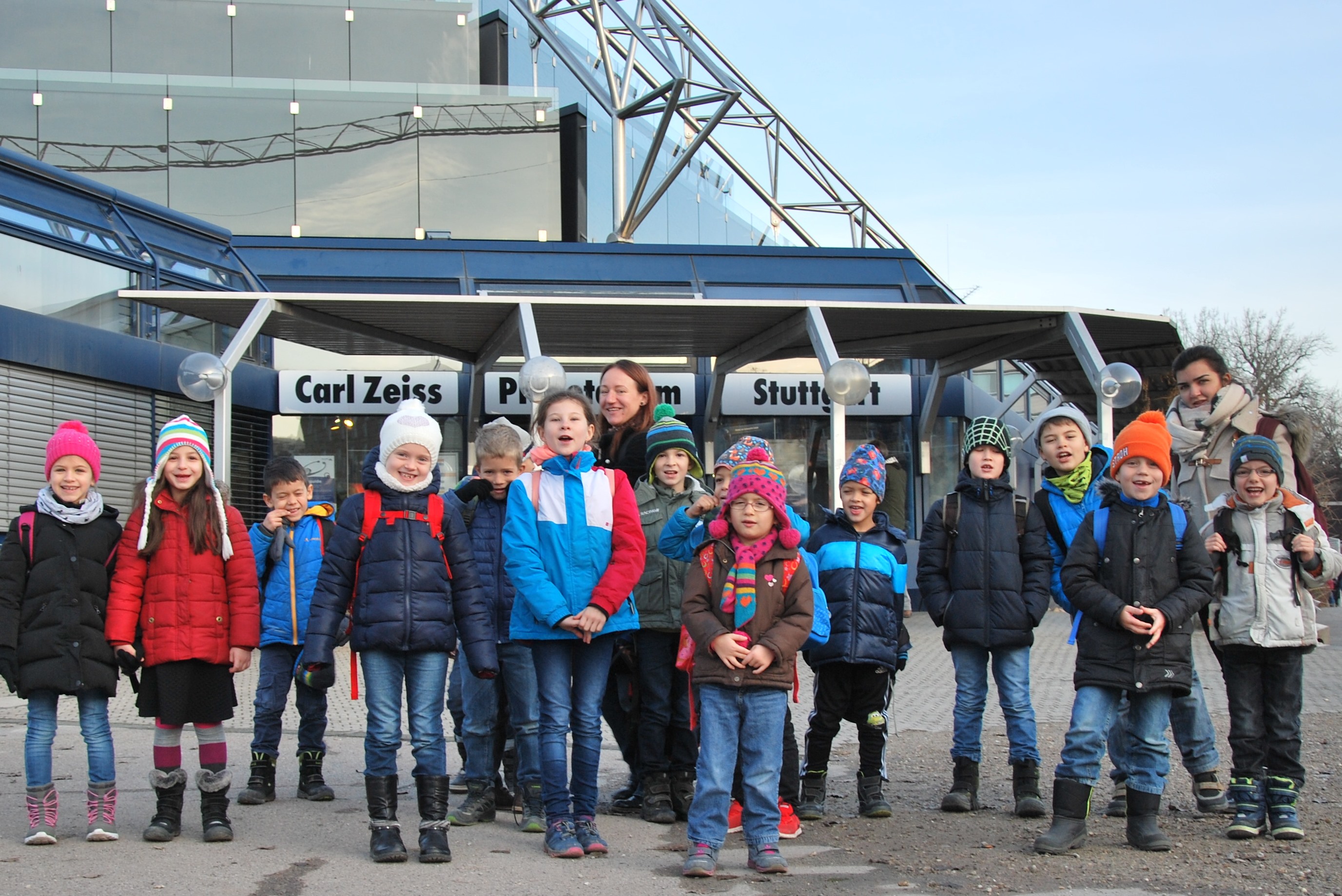 Am Dienstag, den 27.12.2016 waren die Kinder startklar für ihre Reise ins Universum. Die eine Gruppe der Kinder begab sich zum Astronautentraining in die Turnhalle, die andere Gruppe machte sich auf den Weg ins Planetarium Stuttgart. Ein sprechendes Astronomie Buch führte uns hier durch das Programm und in einem atemberaubenden Flug ging es zu allen 8 Planeten unseres Sonnensystems, Merkur, Venus, Erde, Mars, Jupiter, Saturn, Uranus, Neptun. Ein riesiger Beamer und ein Schaukelsessel für jedes einzelne Kind – so konnten sie sich getrost zurücklehnen und das kreisende Weltall genießen. Das Sonnensystem umfasst nicht nur die Planeten, sondern auch alle anderen kosmischen Objekte, wie Kometen, Zwergplaneten und Asteroiden. Alle unterliegen der Anziehungskraft der Erde. Die 8 Planeten ziehen ihre Bahnen um die Sonne und sind alle völlig unterschiedlich.