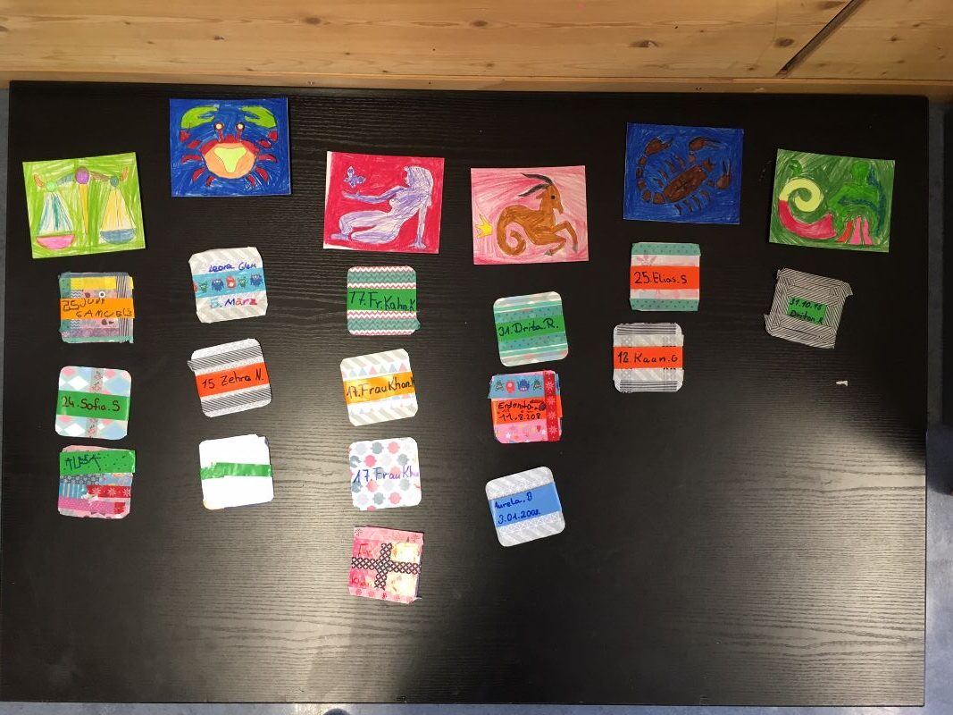 Neben der Astronomie beschäftigte uns am letzten Tag der Ferienbetreuung die Astrologie. Die zwölf Sternzeichen wurden mit bunten Farben gestaltet und die Kinder konnten sich die verschiedenen Eigenschaften der Sternzeichen anschauen und für sich selbst überprüfen ob die zugeordneten Eigenschaften ihrer Persönlichkeit entsprechen. Der Steinbock ist z.B. verantwortungsbewusst, produktiv, ehrgeizig, geduldig und fleißig, aber er kann auch geizig, kleinlich, pessimistisch, stur und introvertiert wirken.