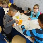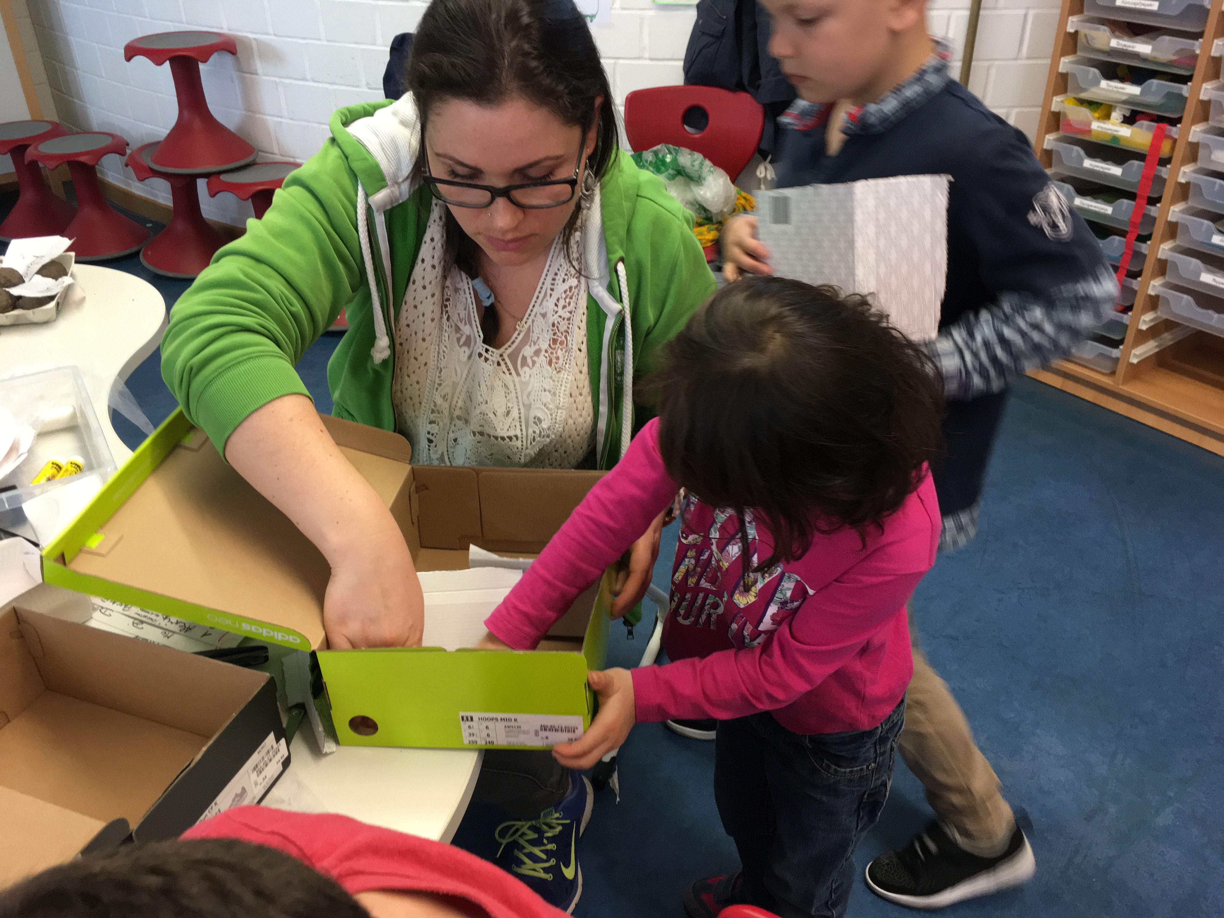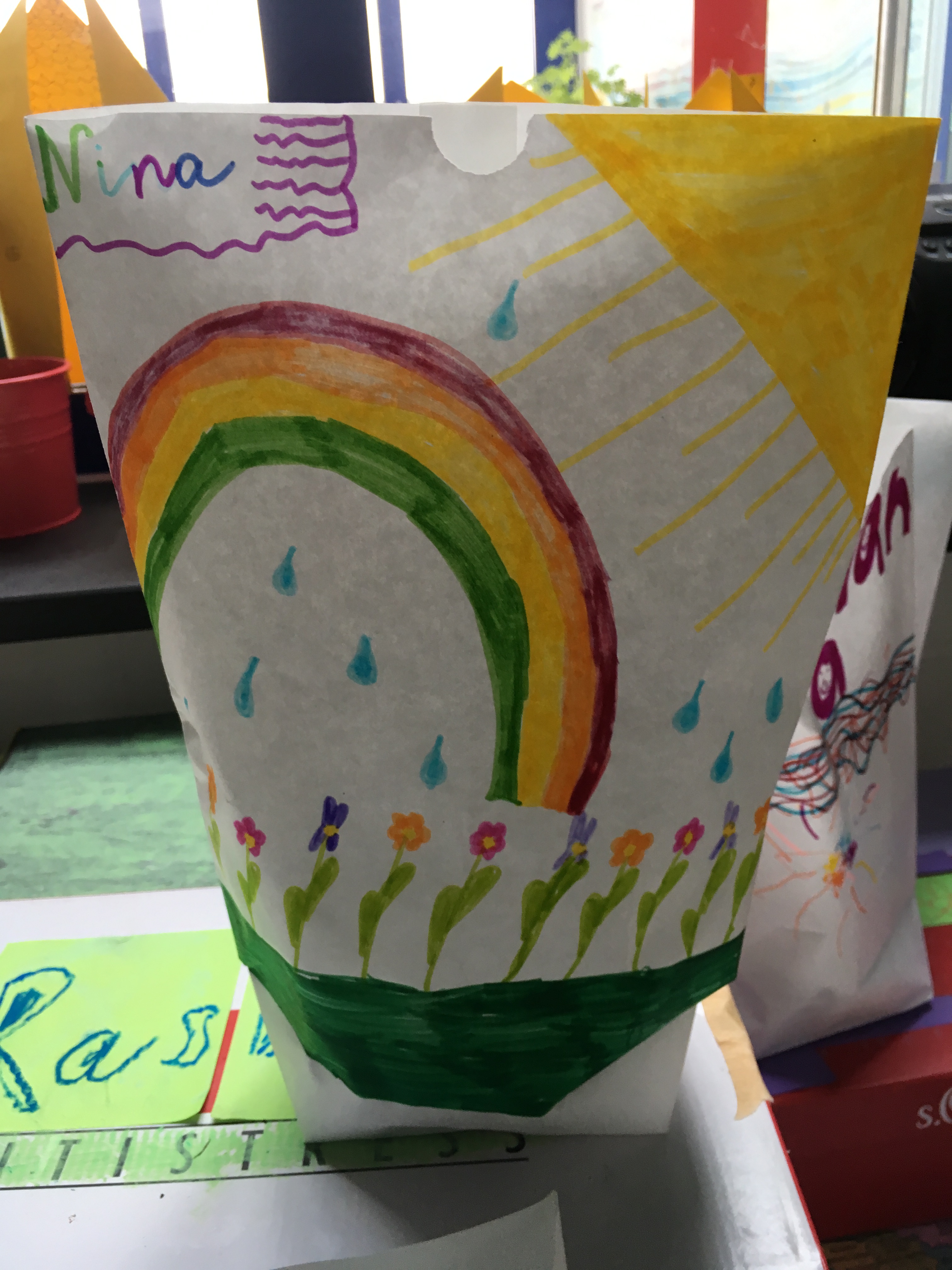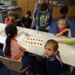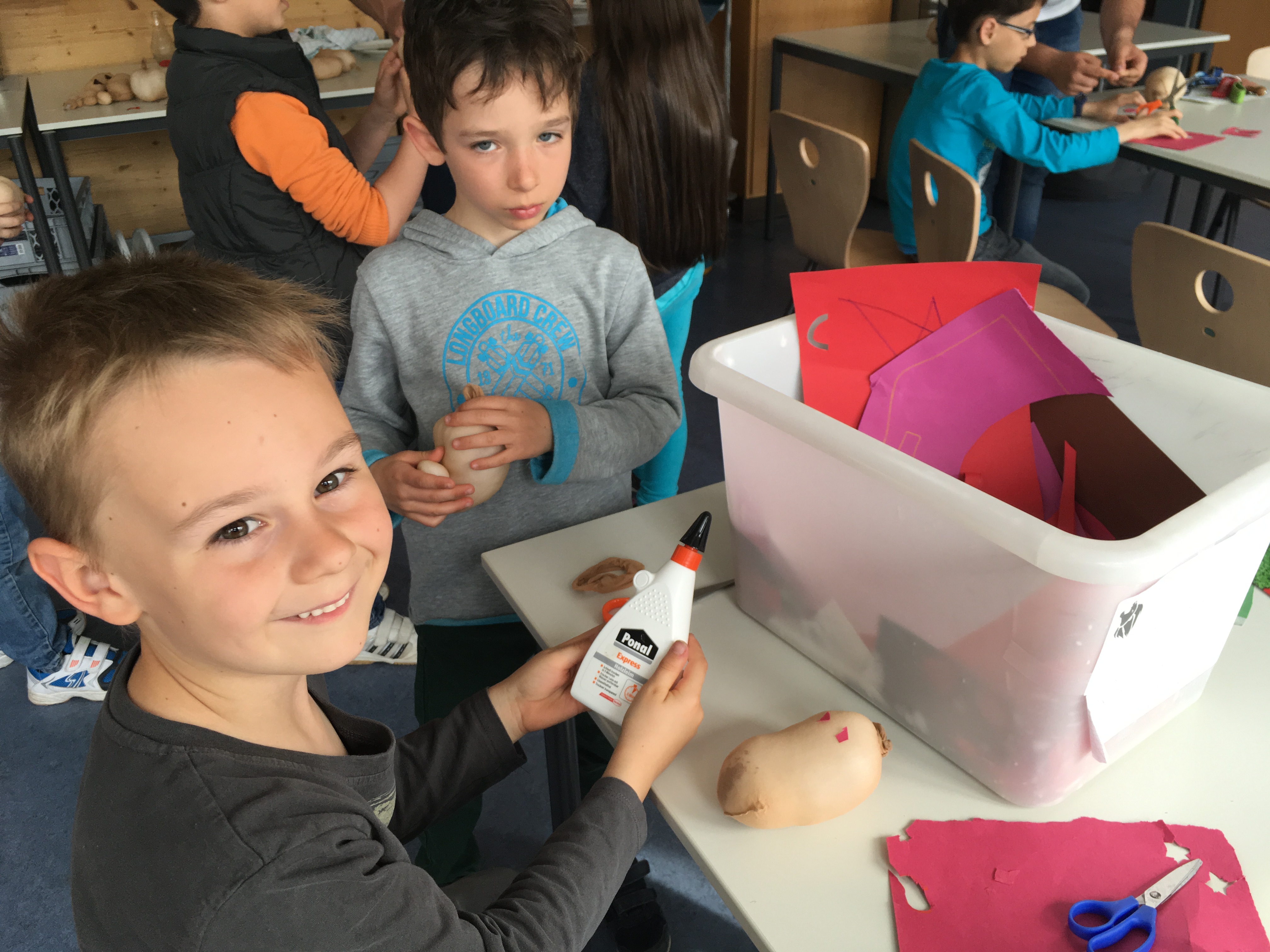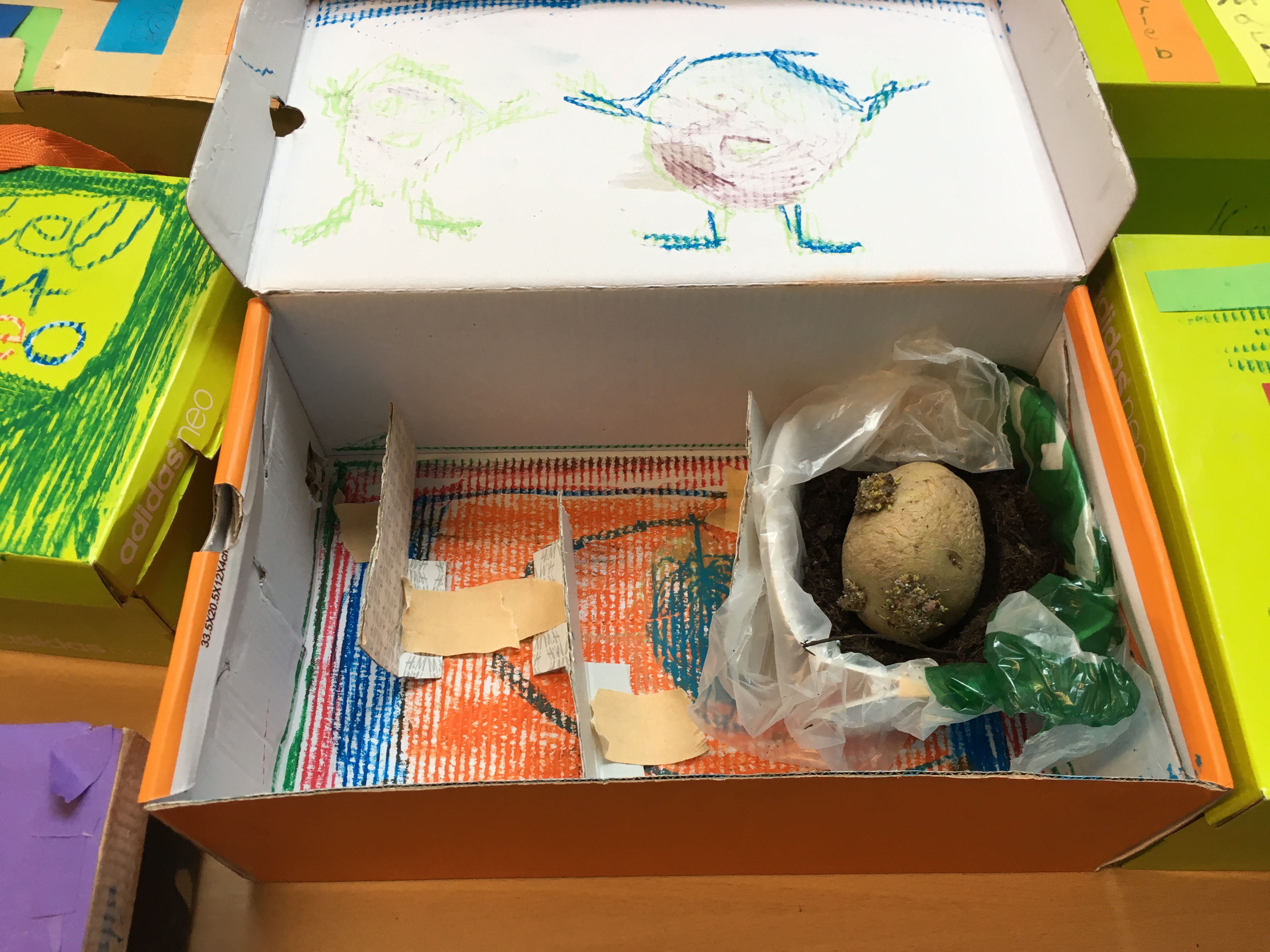 Das Kartoffelexperiment war für uns alle eine spannende Angelegenheit. Wir bauten eine Art kleines Labyrinth in einen Schuhkarton, schnitten ein kleines Loch in die Wand und legten eine ausgetriebene Kartoffel in den Karton. Dann schlossen wir den Deckel und warteten, was wohl geschehen würde. Die Triebe der Kartoffel wuchsen Richtung Licht durch das Labyrinth. Dies zeigte uns wie wichtig das Licht der Sonne für das Wachsen der Pflanzen ist.