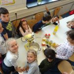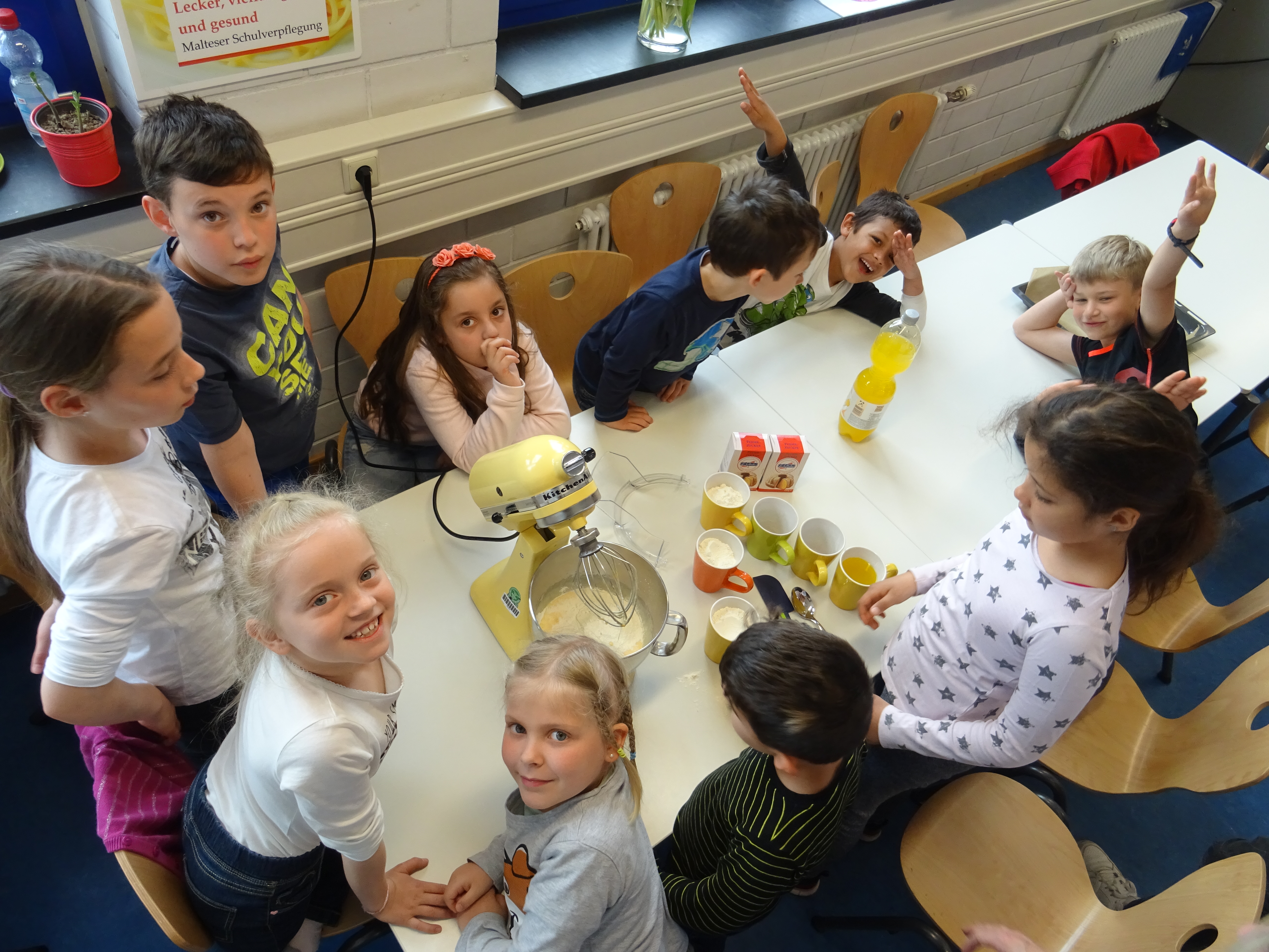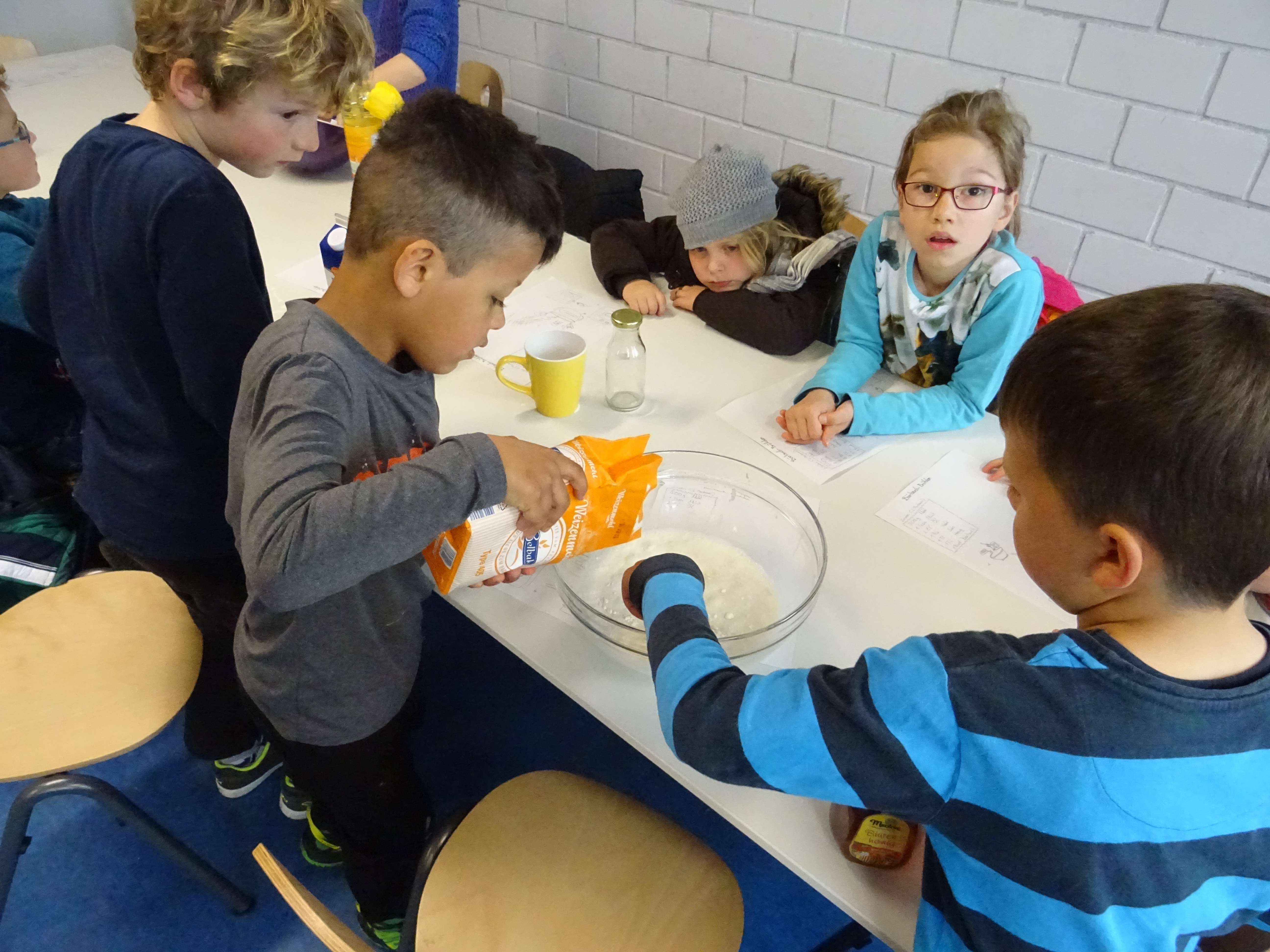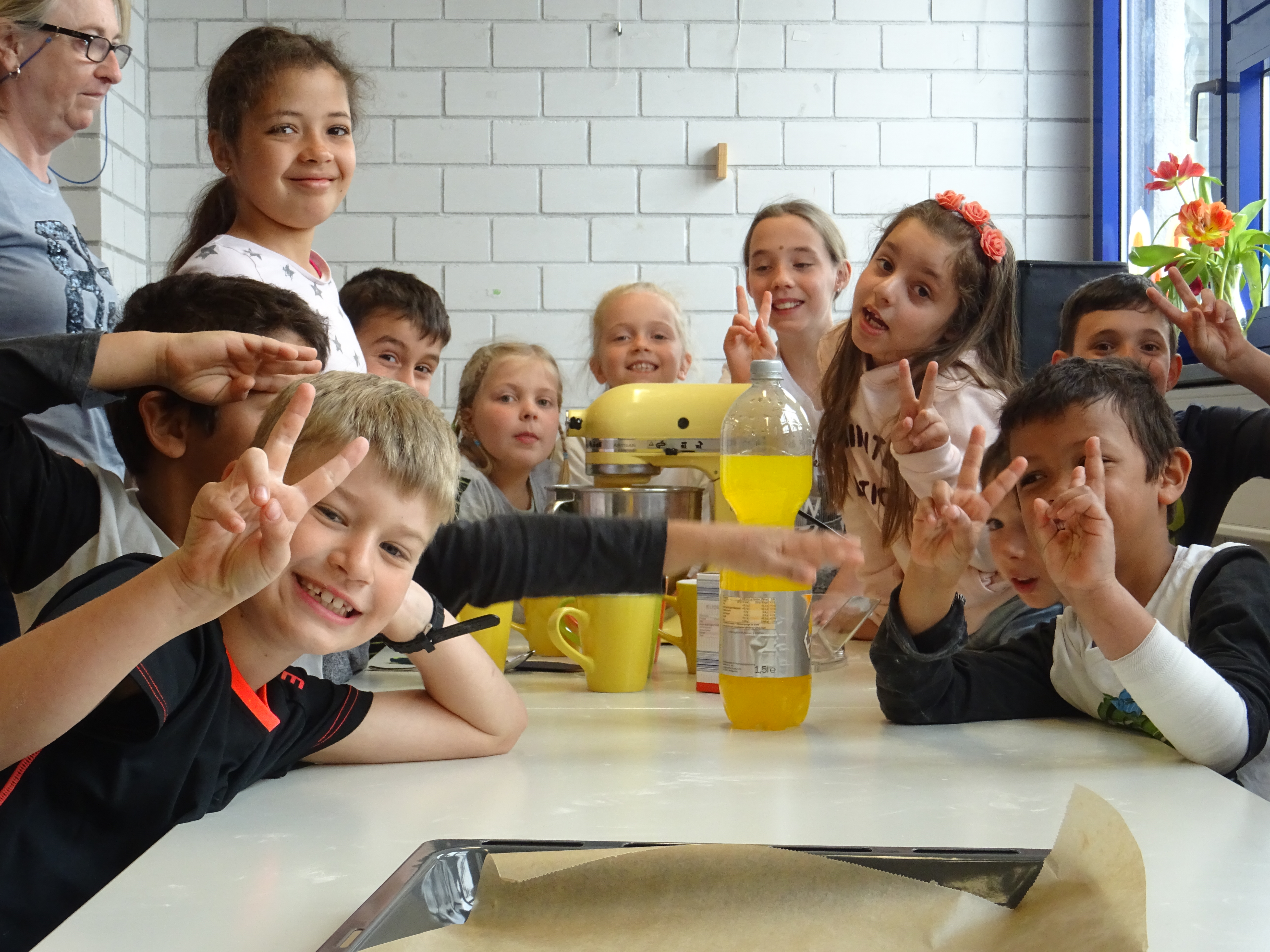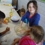 Gartenarbeit macht hungrig, egal ob draußen oder im Pavillon. Daher machte auch das Kochangebot wieder besonders Spaß. In der ersten Woche backten wir bunte Osterhäschen. In der zweiten Woche verschiedene Kuchen. Die Blätterteigtaschen und die Biskuitrolle mit Marmeladenfüllung schmeckten uns besonders gut. Am Ende sind wir mit vollem Bauch nach Hause gegangen.