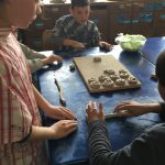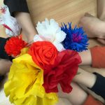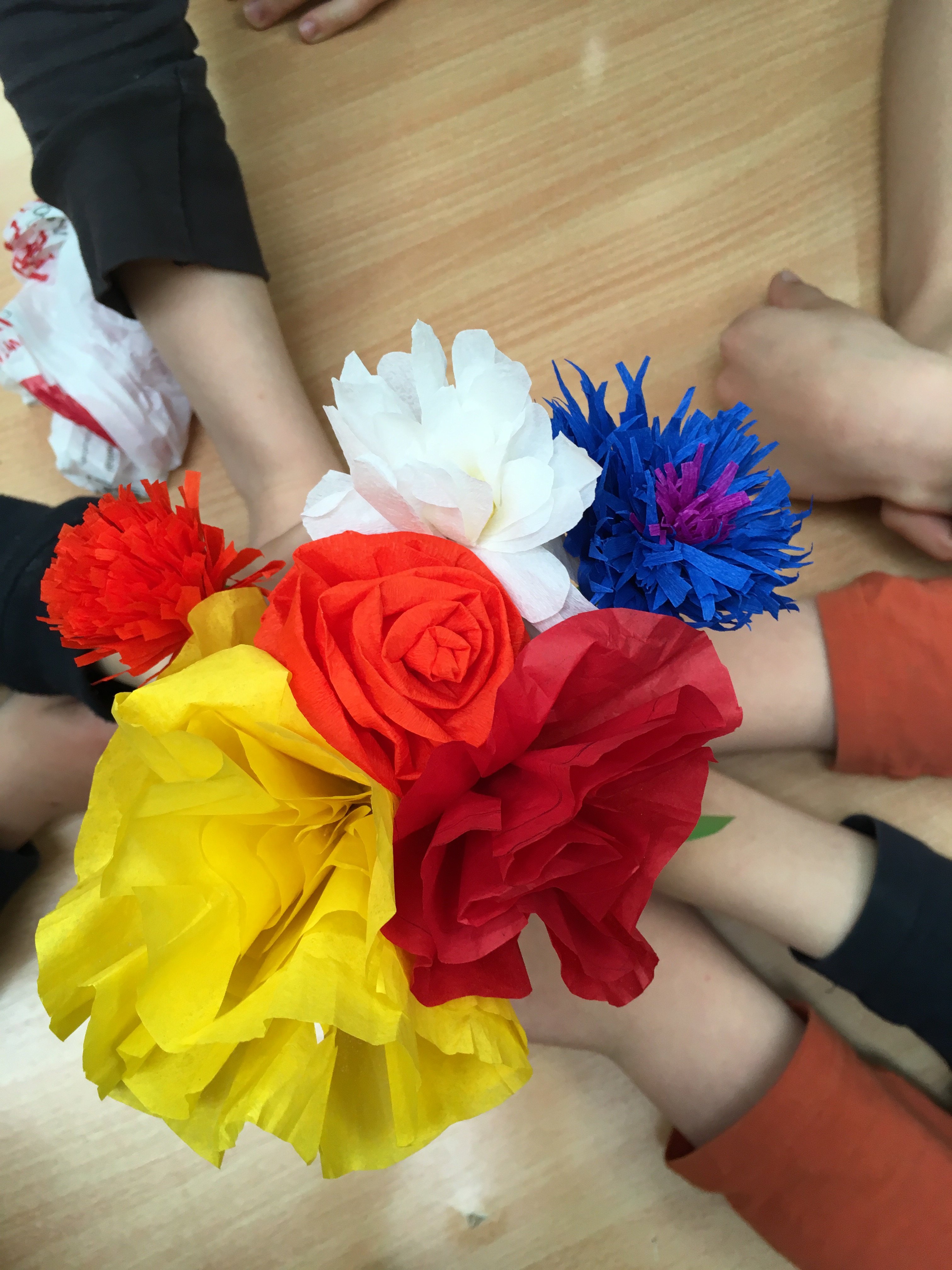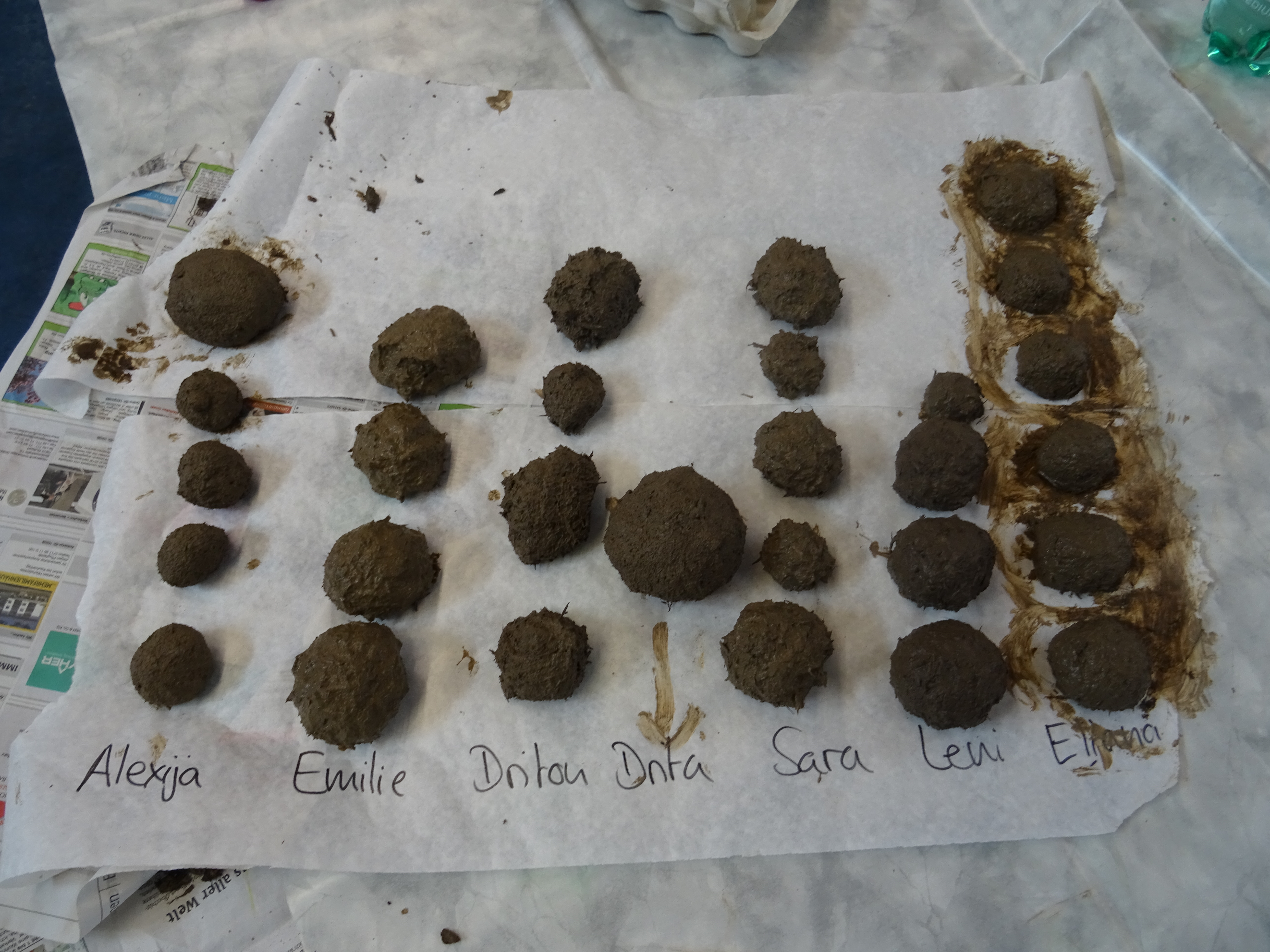 Unsere Blütenkugeln für zuhause waren gar nicht so einfach gemacht. Zuerst einmal rieben wir trockenen Ton zu Pulver, was ganz schön anstrengend war. Dann vermischten wir dieses Pulver mit Blumenerde, Blumensamen und Wasser und kneteten kleine Kugeln. Dies klappte sehr gut und nachdem die Kugeln getrocknet waren packten wir sie in unsere selbstbemalten Blumentüten. Voller Stolz können wir sagen, dass wir die Welt mit unseren Blütenkugeln ein bisschen bunter machen werden.