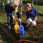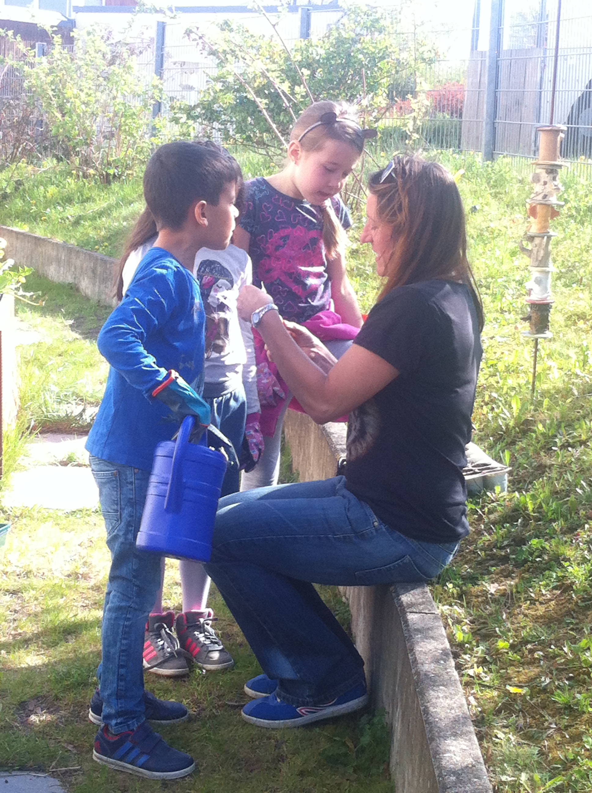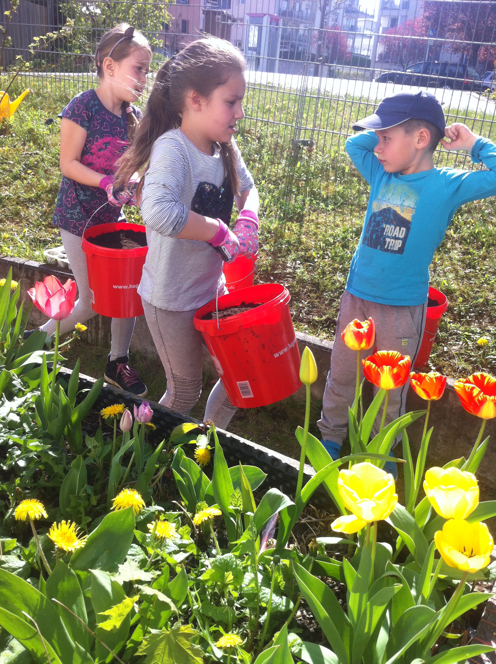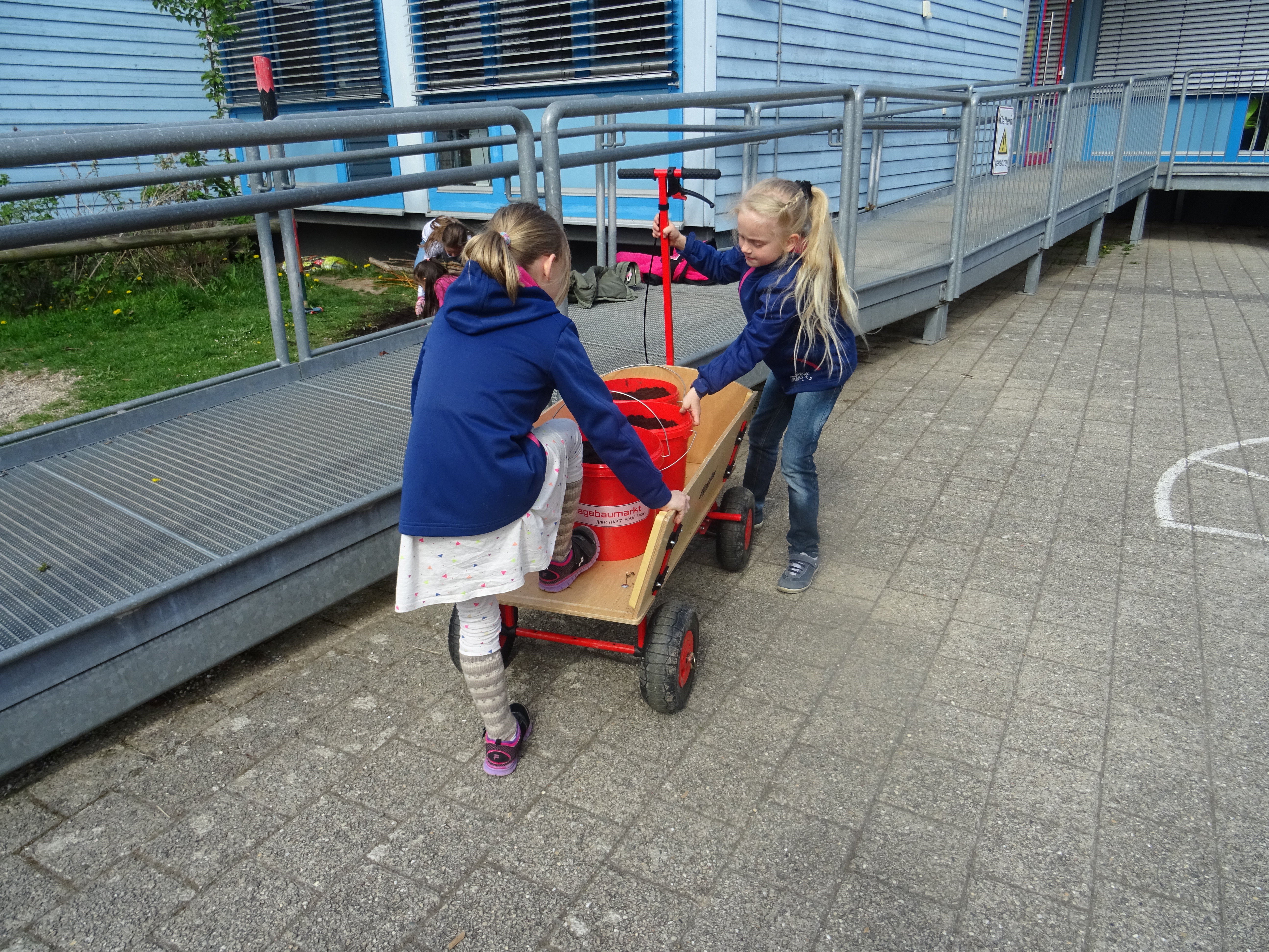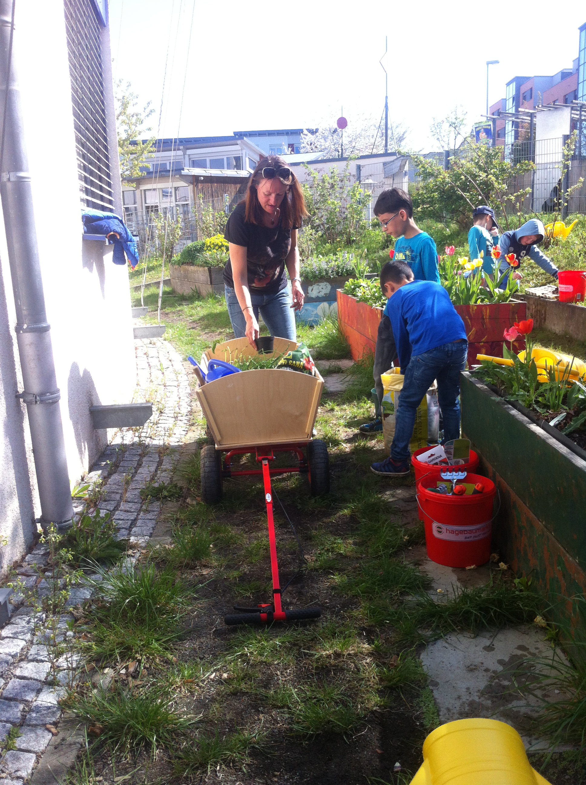 Die Osterferien lagen in diesem Jahr mitten im April, und dieser zeigte sich von seiner besten Seite. April, April macht was er will… somit hatten wir, was das Wetter anging, von allem etwas dabei: Sonne, Regen, Hagel und sogar Schnee. Die Wetterlage passte nicht ganz zu unserem Thema: Alles, was wächst und gedeiht – wir pflegen unseren Schulgarten. Aber wir ließen uns nicht vom unsteten Aprilwetter abhalten. Regenjacken, Schneehosen und Handschuhe an und nichts wie raus in den Schulgarten. Hier arbeiteten wir fleißig mit Schaufeln, Erde, Blumensamen und gingen dem Unkraut an die Wurzeln. Auch unser selbstgebautes Kräuterregal bepflanzten wir mit Basilikum, Schnittlauch und Dill. In unseren Mini-Gewächshäusern zogen wir aus verschiedenen Samen Zöglinge von Kräutern und Blumen, die wir bald nach draußen setzen wollen.