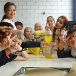 Auch essbare Blüten standen auf unserem Programm. Aus diesen lassen sich allerlei Lebensmittel verfeinern und verschönern. So backten wir leckere Bärlauch-Kräuterbrötchen, machten duftenden Fliederessig und süßen Blütenzucker. Alle hatten wir großen Spaß und waren erstaunt, welche Pracht an essbaren Blüten direkt auf der Wiese nebenan wachsen.