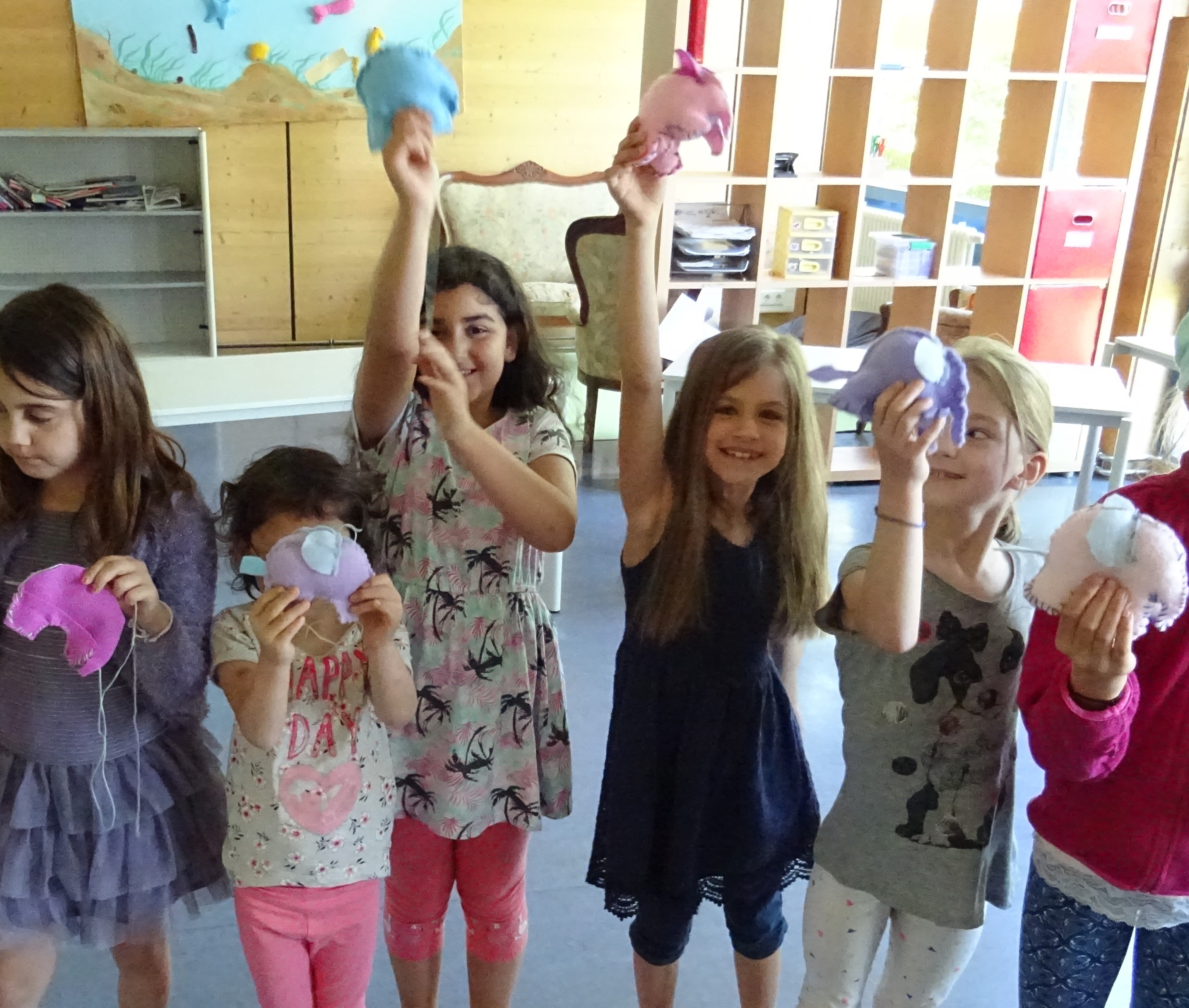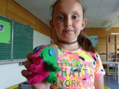 Das Handyverbot an der Schule haben wir in den Pfingstferien kurzerhand außer Kraft gesetzt, da wir zum Thema „Erfindungen der Kommunikation unserer Zeit“ das Handy nicht außen vor lassen wollten. Wir gestalteten unsere eigenen Geräte mit Holz und Farbe und den tollsten Funktionen. Hier war alles möglich, was die Phantasie bereitstellte. Natürlich war das Telefonieren und Spielen mit den selbstgebastelten Handys ein großer Spaß.