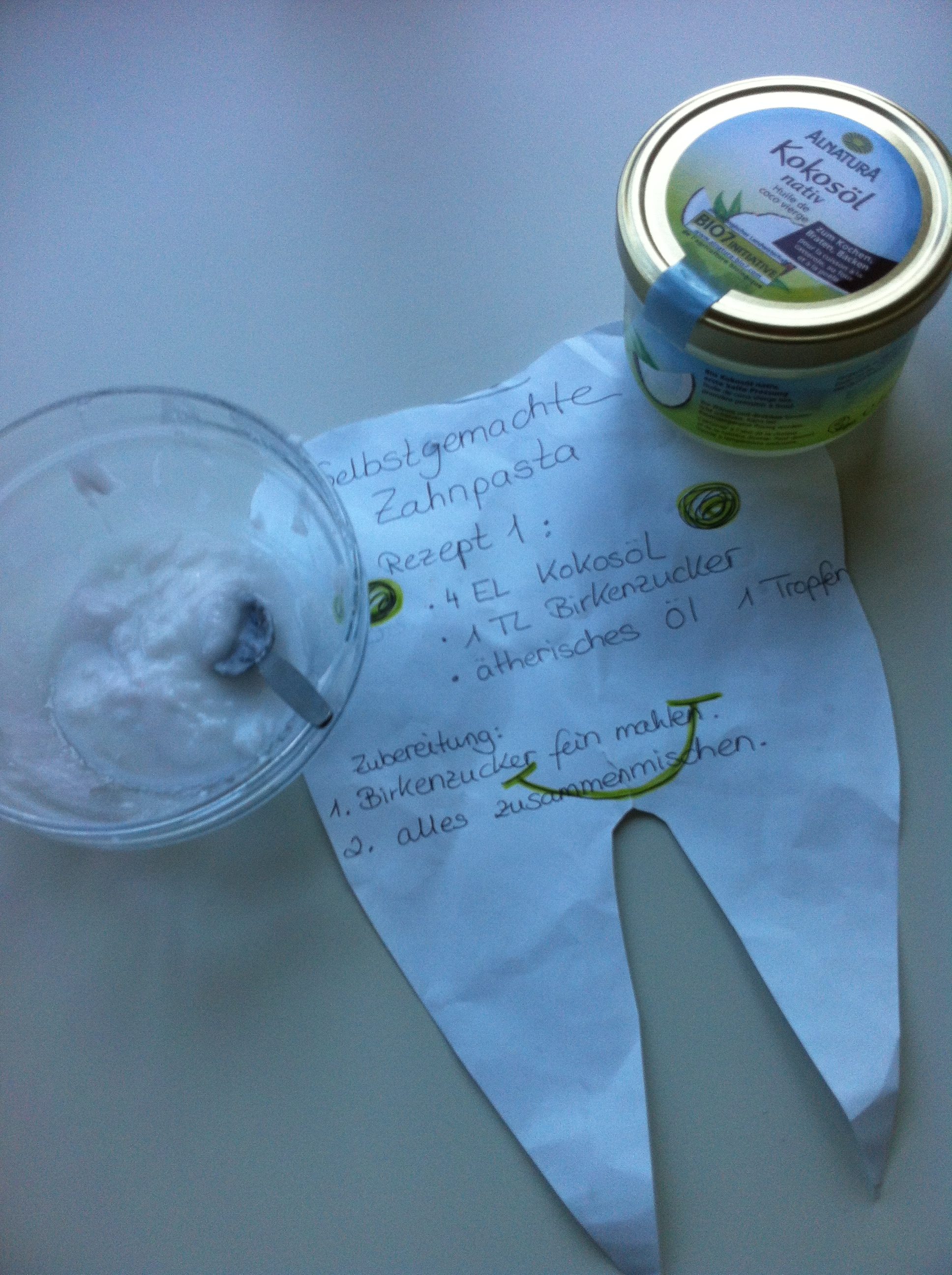 Ebenso „cool“ war auch die selbsthergestellte Zahnpasta, die 1902 erfunden wurde. Aus nur wenigen Zutaten wie Kokosöl, Birkenzucker, Natron und Pfefferminzöltropfen haben wir unsere eigene Zahnpasta hergestellt. Hier konnten wir erfahren, dass Birkenzucker kein normaler Zucker ist, sondern für die Zähne gut ist und antibakteriell wirkt. Das Abfüllen in die kleinen Tuben war recht schwierig, aber dafür machte das Zähneputzen mit der eigenen Zahncreme umso mehr Spaß.