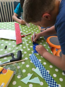 Die Zeit der sonnigen Pfingstferien nutzten wir um verschiedene Erfindungen genauer zu betrachten und diese aus den unterschiedlichsten Materialien neue Objekte selbst zu bauen, zu gestalten, zusammenzusetzen oder neue Gerichte zu kochen.