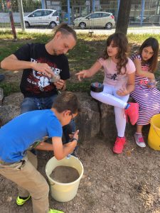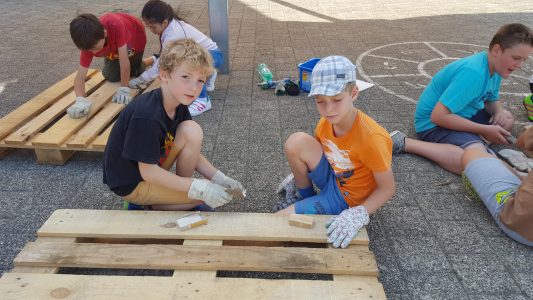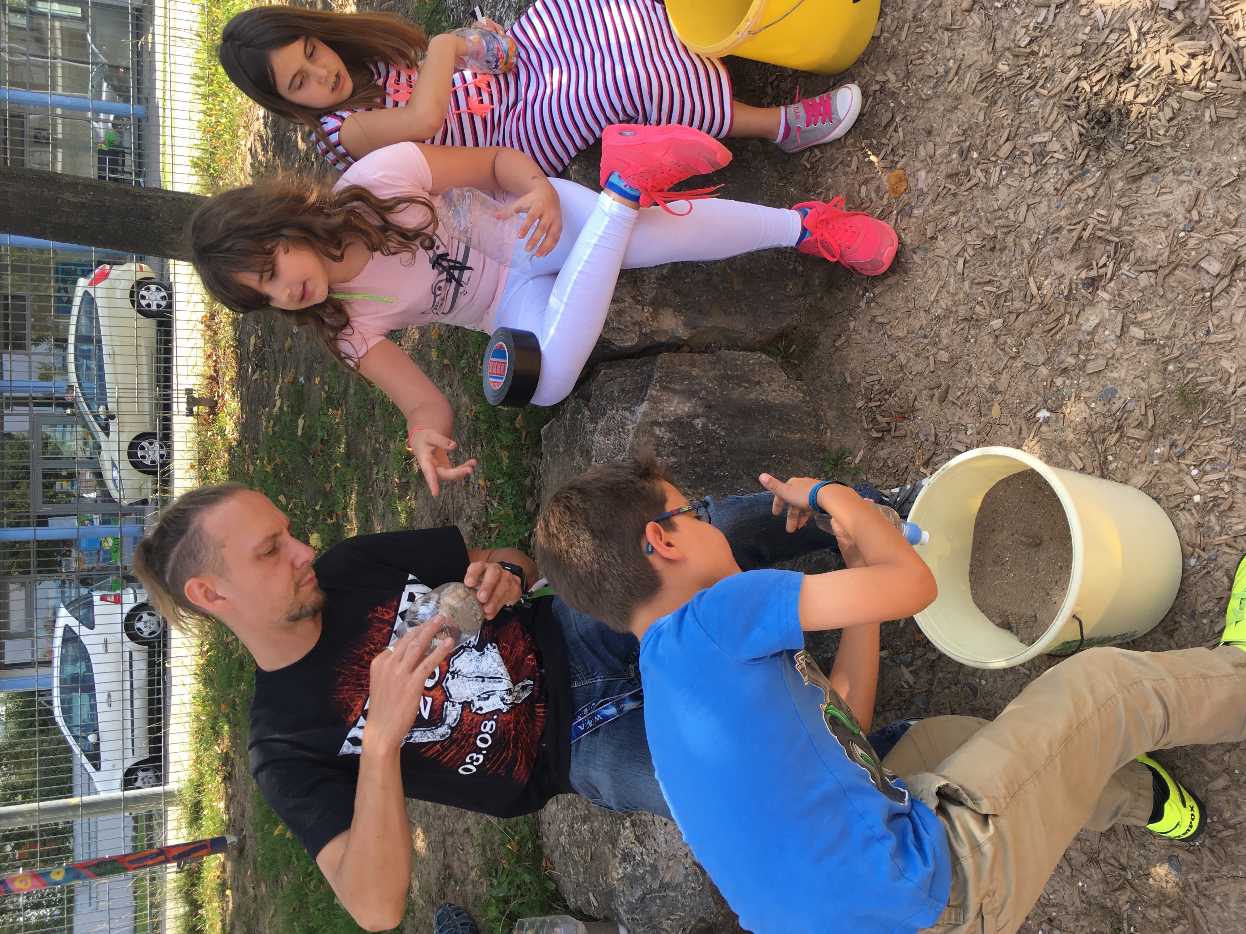 In der letzten Ferienwoche hatten wir Besuch von Susanne Wadle – Bildende Künstlerin – und Frauke Löffler – Mosaikkünstlerin. Diese beiden Angebote waren wirklich besonders! Alle haben mitgemacht! Mit Frau Wadle verwandelten wir Schrott zu ganz eigenen Kunstwerken, die die Kinder dann mit verschiedenen Gegenständen behängten um diese dann zum Klingen und Musizieren brachten. Wir haben geschraubt, gefeilt und gemalt – und so wurden unsere Kunstwerke einzigartig, genau wie wir! Es hat uns sehr viel Spaß gemacht, unsere eigenen Ideen zu verwirklichen. Mit Frau Löffler legten wir verschiedene Mosaike für den Schlangenkopf im Schulgarten, Stein um Stein, so kam keine Langeweile auf. Die Plätze in der Mosaikgruppe waren sehr begehrt und wir freuen uns schon darauf, Frau Löffler in den Pfingstferien wieder bei uns zu haben.