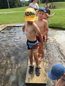 Der Ausflug zum Wasserspielplatz hat allen sehr viel Spaß gemacht. Es waren sehr viele Kindergruppen vor Ort, aber trotzdem verlief alles friedlich und die Kinder pumpten Wasser, öffneten und schlossen Schleusen und picknickten auf der Wiese.