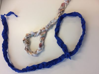 Auch bei den Burgfräuleins ging es bunt und freudig zu. Die Kinder flochten, um zur mittelalterlichen Dame zu werden, aus Stoffen, Filz oder Krepppapieren schöne bunte Haarkränze. Hier waren der Kreativität keine Grenzen gesetzt. Schnell hatten die Kinder eigene Ideen, was sie aus den Materialien noch alles machen konnten. Ganz fix flochten sie Accessoires wie Gürtel oder Armbänder.