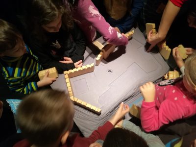 Der Ausflug zum Thema „ Ritter“ führte die Feriengruppe ins neue Schloss nach Stuttgart zur Mitmachausstellung „Leben auf der Burg“. Die Ausstellung war einfach klasse. Zu Beginn erfuhren die Kinder ei der Kinderführung viel über das Leben der Ritter. Danach durften die Kinder in verschiedenen Themenräumen allerlei auch selber ausprobieren. Sie konnten Kettenhemden anprobieren, Bogenschießen üben, und mit Schwertern kämpfen. Die Ritter und Burgfräuleins waren ein tolles Thema, mit dem sich die Kinder sicher gerne länger beschäftigt hätten.