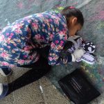 Im Angebot „Spiele aus aller Welt“ wurde es mit Murmeln ganz schön bunt. Die Kinder tauchten diese in flüssige Farben – rot, grün, blau, gelb…und setzten die Murmel dann in einen Papp-karton mit weißem Papierboden. Rechts, links, vor, zurück und wieder von vorne… je nachdem, wie die Kinder dann den Pappkarton bewegten, malte die Murmel ein tolles Bild auf das Papier.