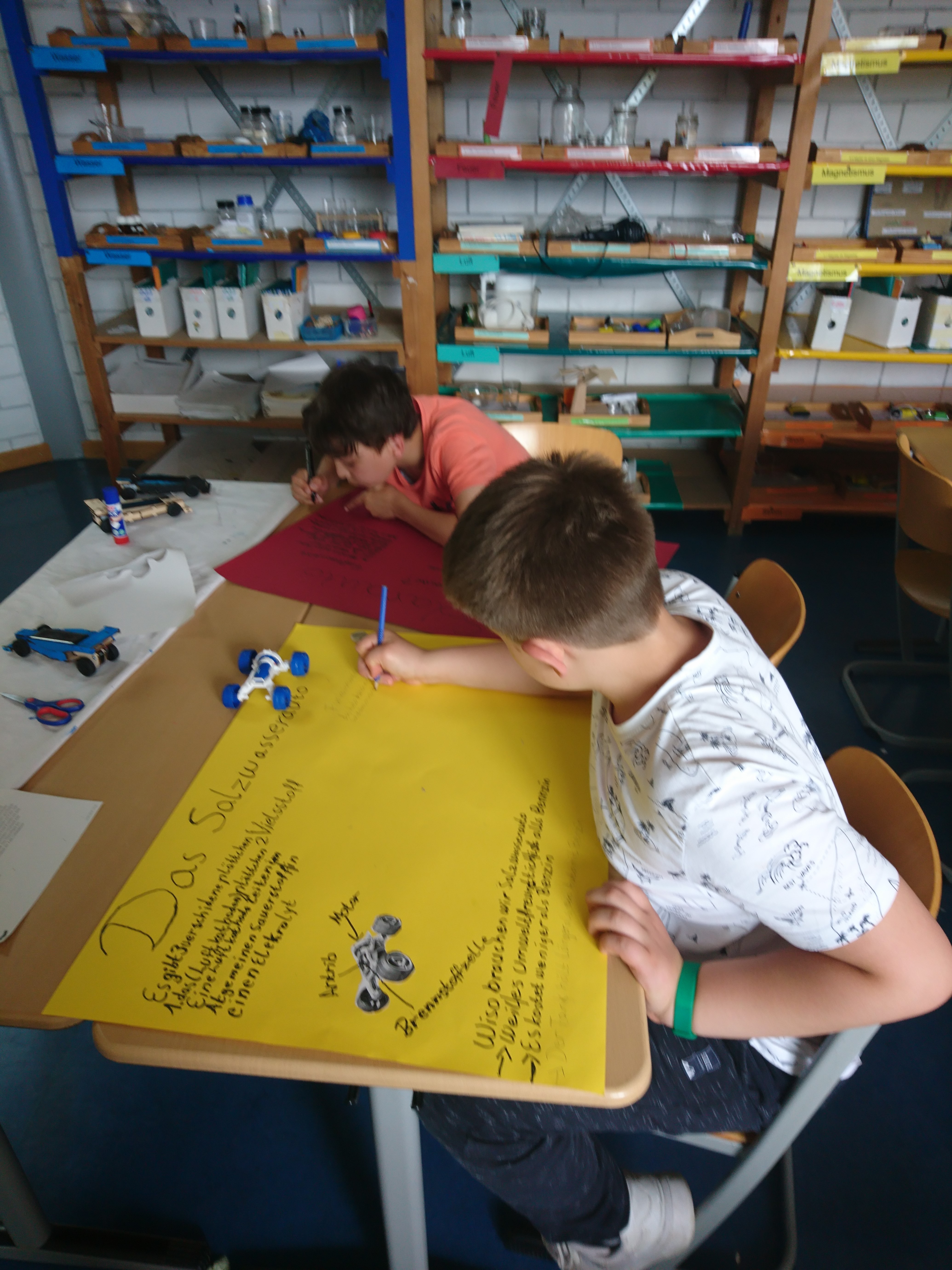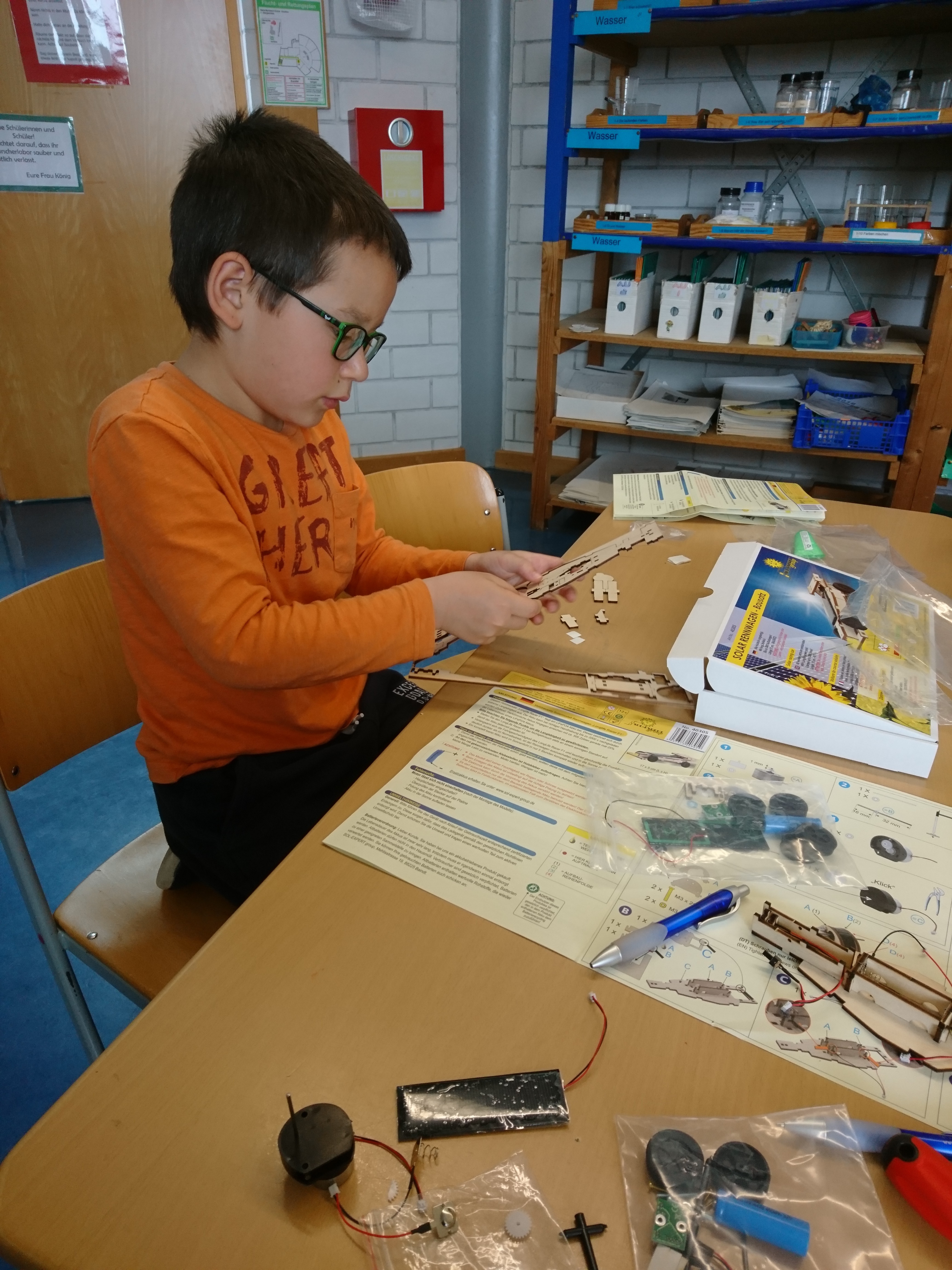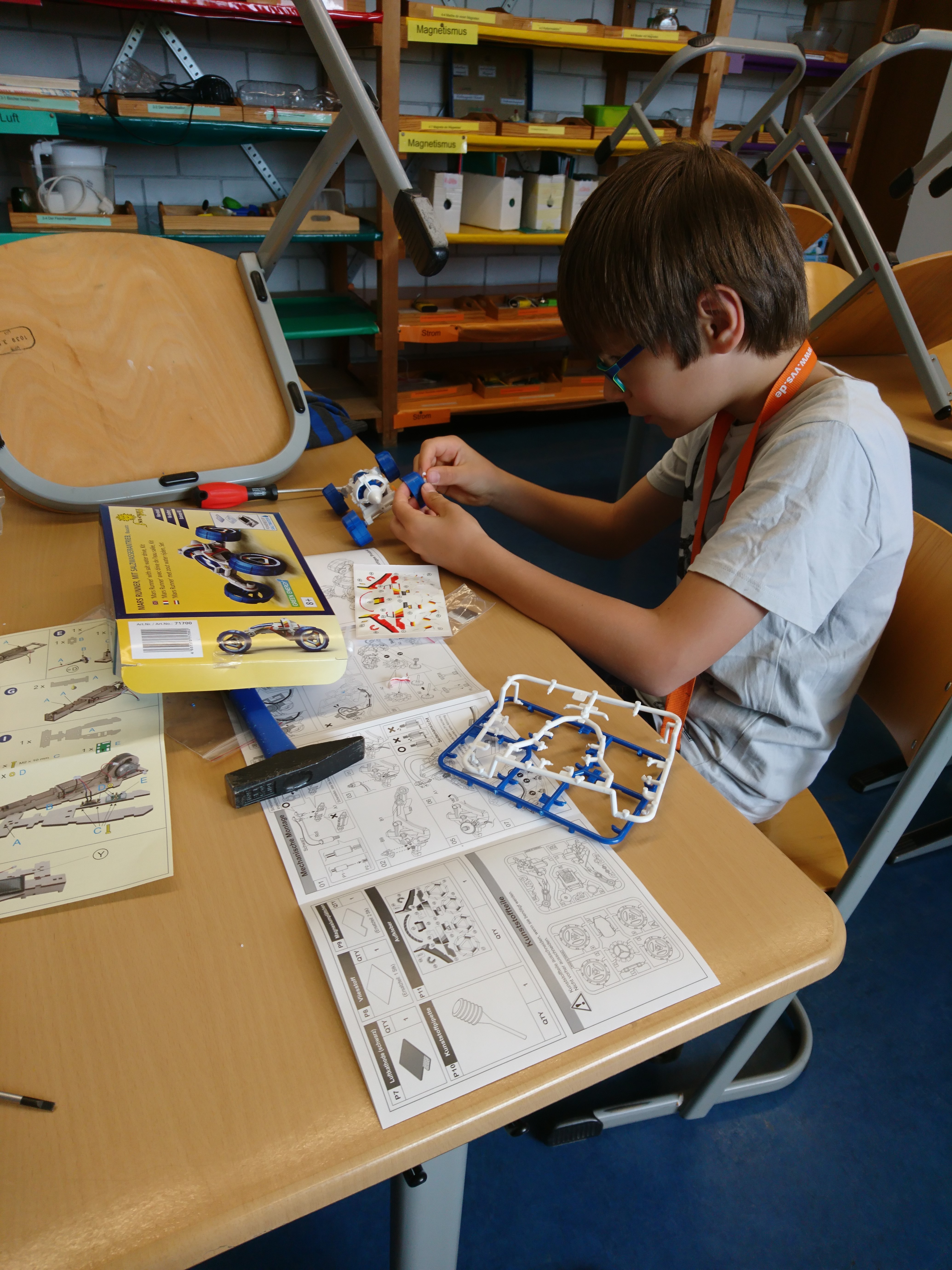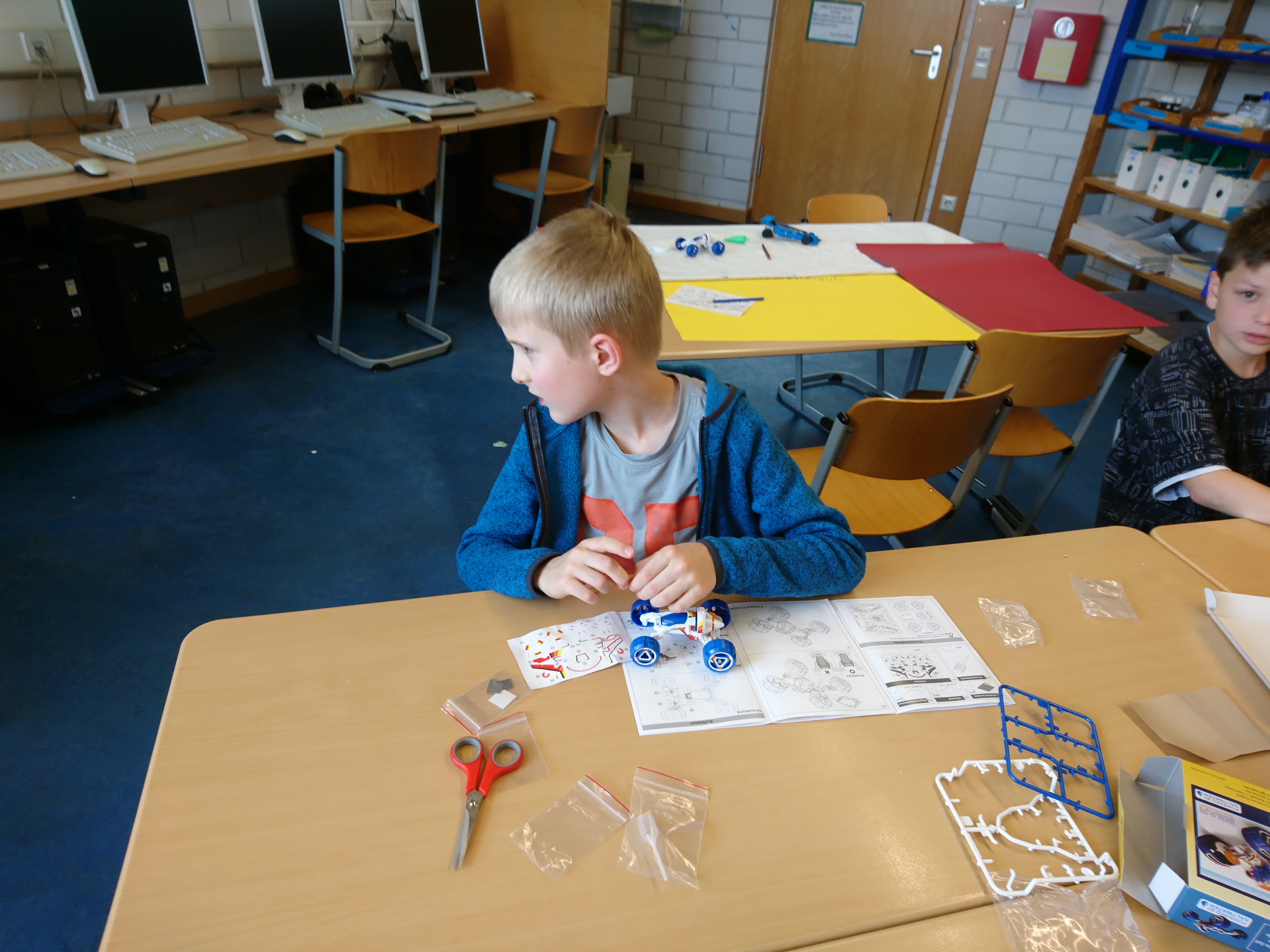 Die Kinder im Angebot Solar-und Salzwasserautos zeigten vollen Einsatz und Hingabe für die Technik. Das Zusammenbauen der Autos war zeitweise eine große Herausforderung, aber die Kinder ließen sich nicht beirren. Alle wollten ein bestmögliches Ergebnis erzielen. Dies gelang bei den Salzwasserfahrzeugen deutlich schneller, da die Kinder hier weniger Teile zusammensetzen mussten. Der Zusammenbau des Solarautos war etwas komplizierter. Aber die Kinder wollten es einfach schaffen und zeigten Geduld und Köpfchen. Nachdem dann alle Autos Probe gefahren sind und alle technischen Mängel behoben wurden, waren die Kinder doch sehr stolz.