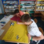 Bunt und fast schon meditativ arbeiteten die Kinder mit Frauke Löffler, unserer Mosaikkünstlerin. In diesem Angebot wurden die Mosaikbilder für die zweite Säule der Schule gelegt. Fische, Krabben, Seepferdchen und Meerjungfrauen werden bald am Eingang der Schule zu sehen sein. Wie stolz kann hier das ein oder andere Kind der Ferienbetreuung dann sein, wenn es sein Mosaikbild an der Säule findet. So eine feine und künstlerische Arbeit ist einfach nur ansprechend und ästhetisch.