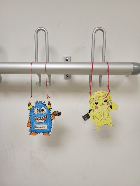 Damit zukünftig jedes Kind seinen festen Platz an der Garderobe hat, wurde zu Beginn der Ferienbetreuung von jedem Kind ein Garderobenschild ausgemalt und gestaltet.
