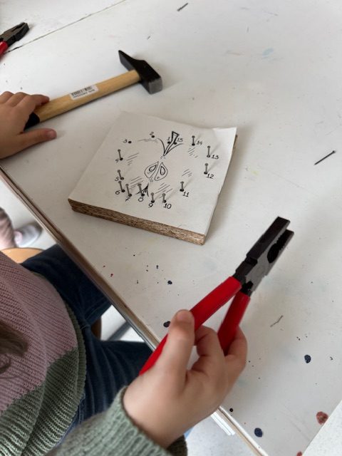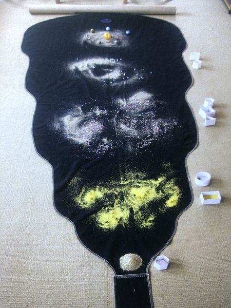 Hierzu stellte eine Kosmische Erzählung nach Maria Montessori den Anfang dar. Ein schwarzes Tuch, Sand als „Teilchen“ im Weltall, Milchpulver passend zur Milchstraße und bunte Murmeln als Planeten brachten die Kinder zum Staunen. Die Erzählung lud ein, dem Zauber des Universums zu folgen und führte schnell zu philosophischen Fragen, wie „Wer bin ich?“ „Was ist unsere Aufgabe in diesem wunderbaren All?“.