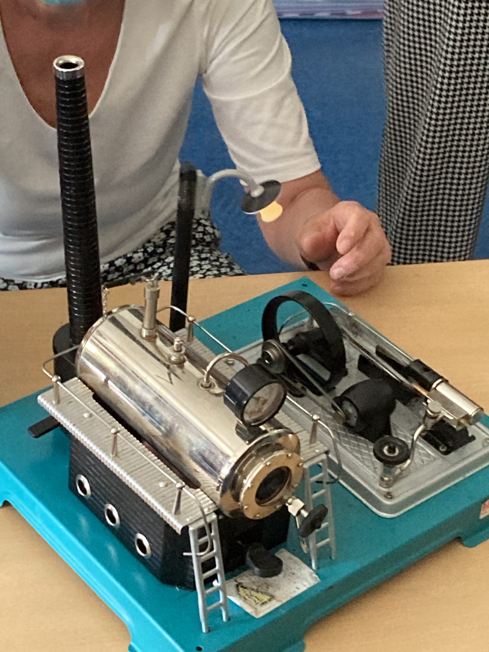Im Anschluss an die Vorstellung inspizierten die Klassen die Ausstellungsstücke außerhalb des Saals. Ein Astronautenanzug verwandelte die Kinder in Raumfahrer*innen.