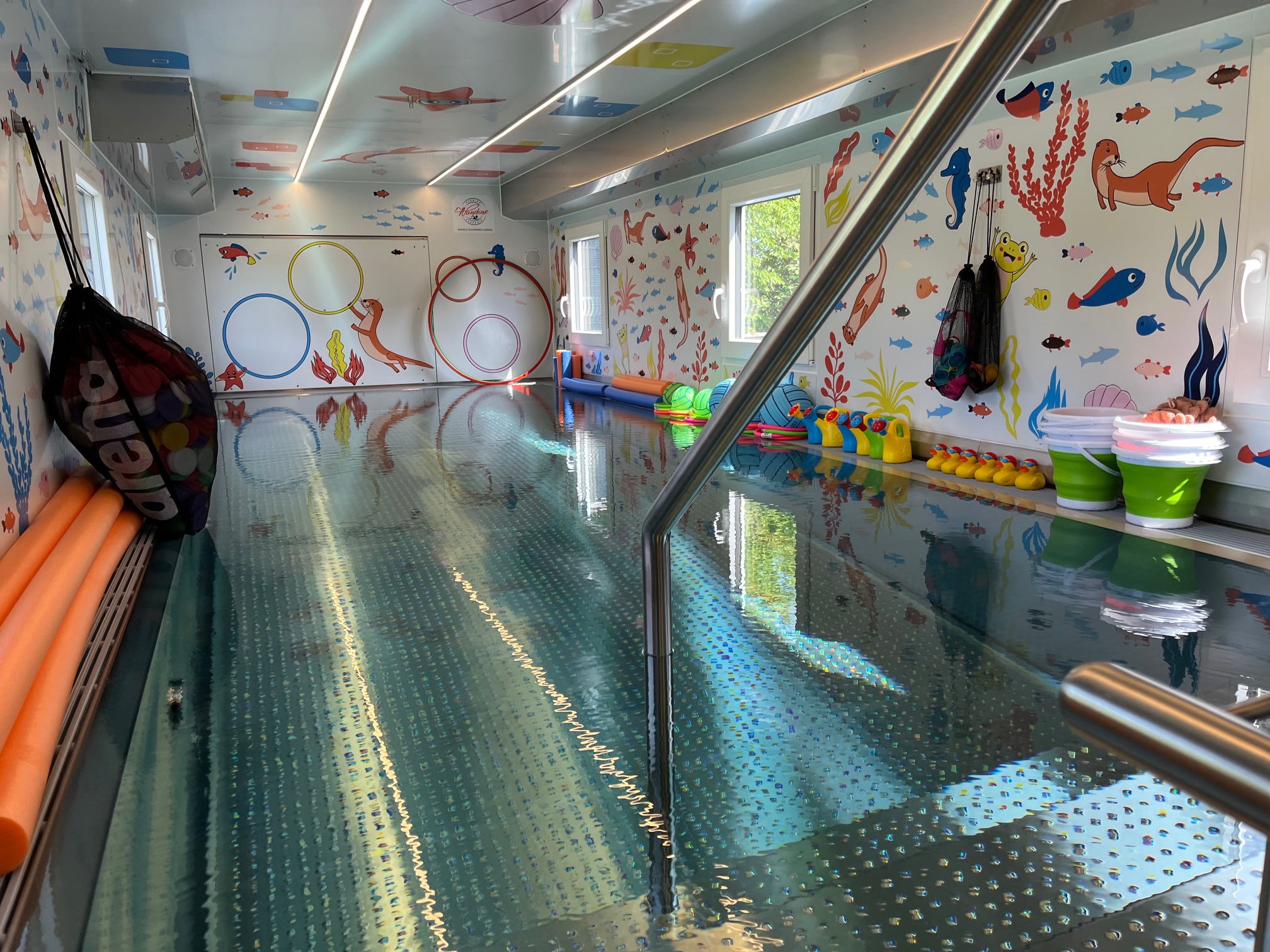 Ein Traum vieler Kinder wurde am 7. Mai 2025 wahr: Bis zu den Sommerferien hat das mobile Schwimmbad der Josef Wund Stiftung seinen Standort auf dem Parkplatz der Maria- Montessori-Schule gefunden.
