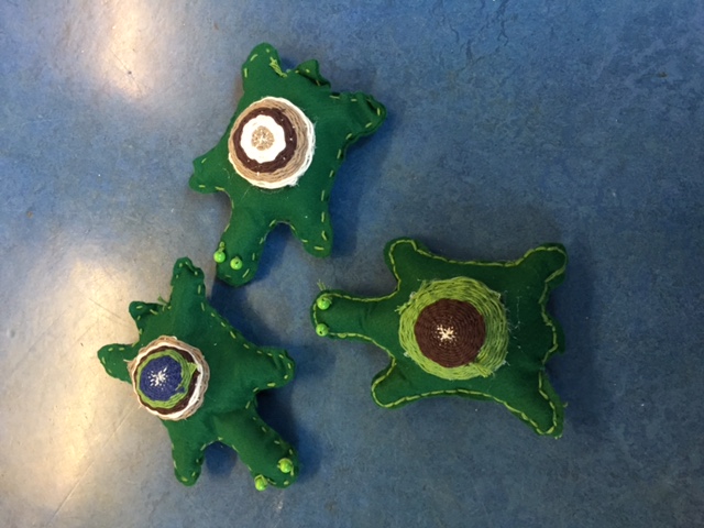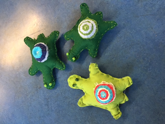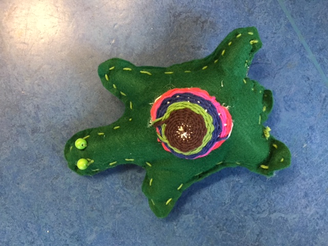 Passend zur Jahreszeit haben sich die Kinder der Klasse 3/4 d im Musikunterricht mit dem Thema „Karneval der Tiere“ beschäftigt. Neben dem Erwerb von theoretischem Wissen über den Komponisten Camille Saint-Saëns stand das Hören der unterschiedlichen Musikstücke im Vordergrund. Passend zur Musik der Schildkröte haben die Kinder im Kunstunterricht fleißig gewebt und genäht. Dabei sind hübsche Schildkröten entstanden, die sich sehen lassen können.