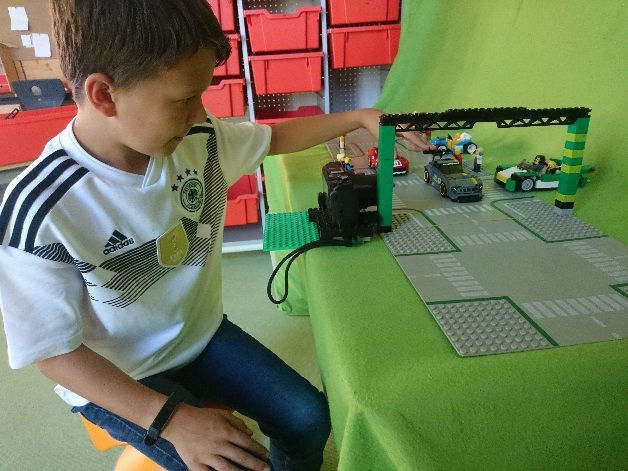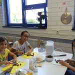 Besonders gut kam bei den Kindern auch das Angebot der Modellautos an. Als die Kinder jedoch die Bausätze der Modellautos öffneten, fielen ihnen erstmal einige Kleinteile entgegen und auf dem Tisch sah es sehr chaotisch aus. Zum Glück war eine gute Anleitung dabei und so konnten die Ferienkinder die Autos Schritt für Schritt zusammenbauen. Zuerst setzten die Schüler und Schülerinnen den Motor aus mehreren Zahnrädern, einer Kurbelwelle und dem Gehäuse zusammen. Anschließend kümmerten sie sich um die Karosserie des Autos. Hierbei wurden bereits vorgefertigte Holzteile zusammengeklebt- und gesteckt, sodass ein schnittiger Sportwagen entstand. Nun wurde der Motor eingebaut und mit der Solarzelle verbunden, ehe zum Abschluss noch die Reifen aufgezogen wurden. Nachdem der Kleber vollständig trocken war, konnten die kleinen Ingenieure mit Stiften ihrem Rennwagen noch einen coolen Look verpassen. Da das Wetter die kompletten Ferien über sehr schön war, war es den Kindern möglich, ihre Modellautos ausgiebig zu testen.