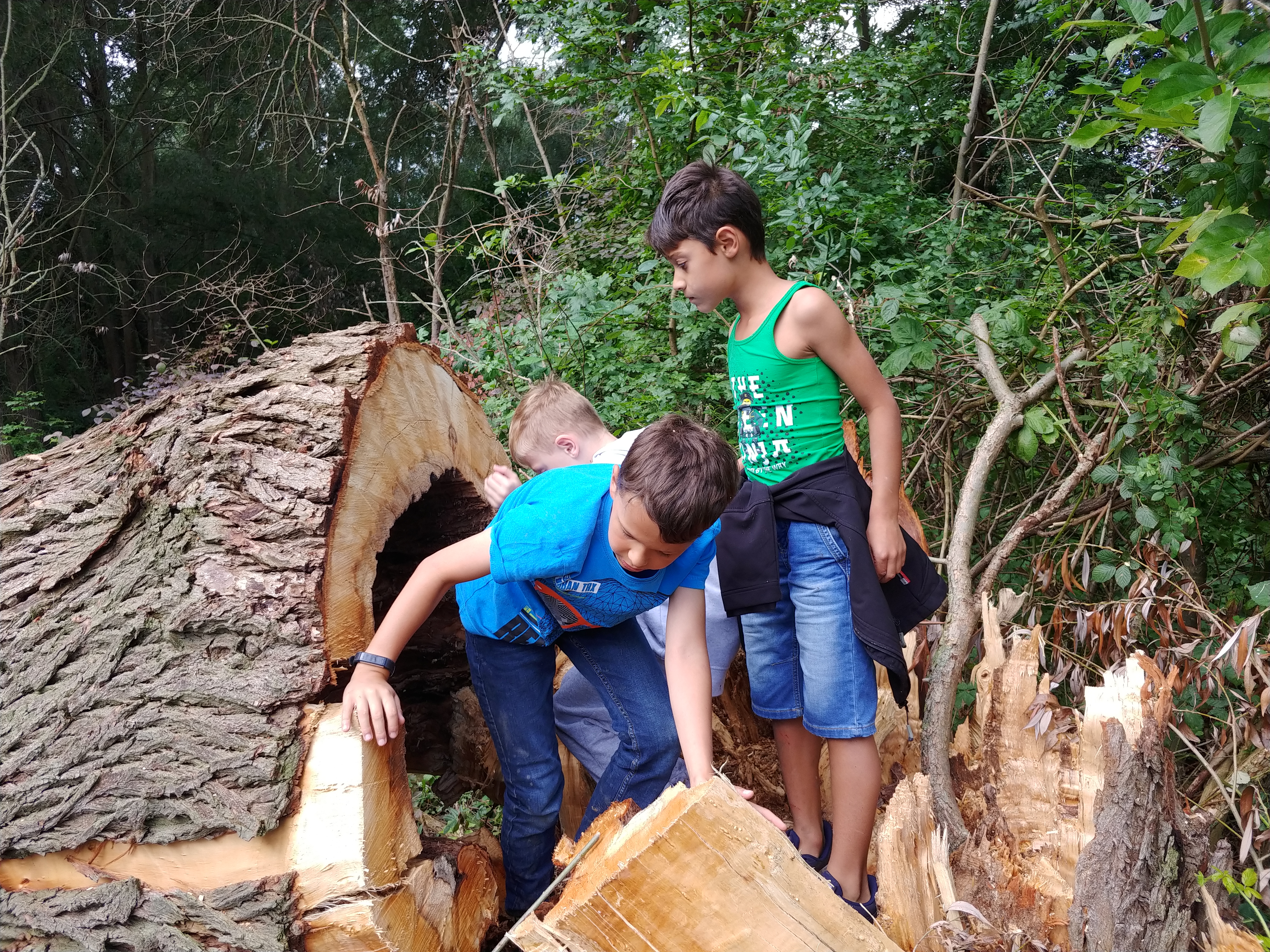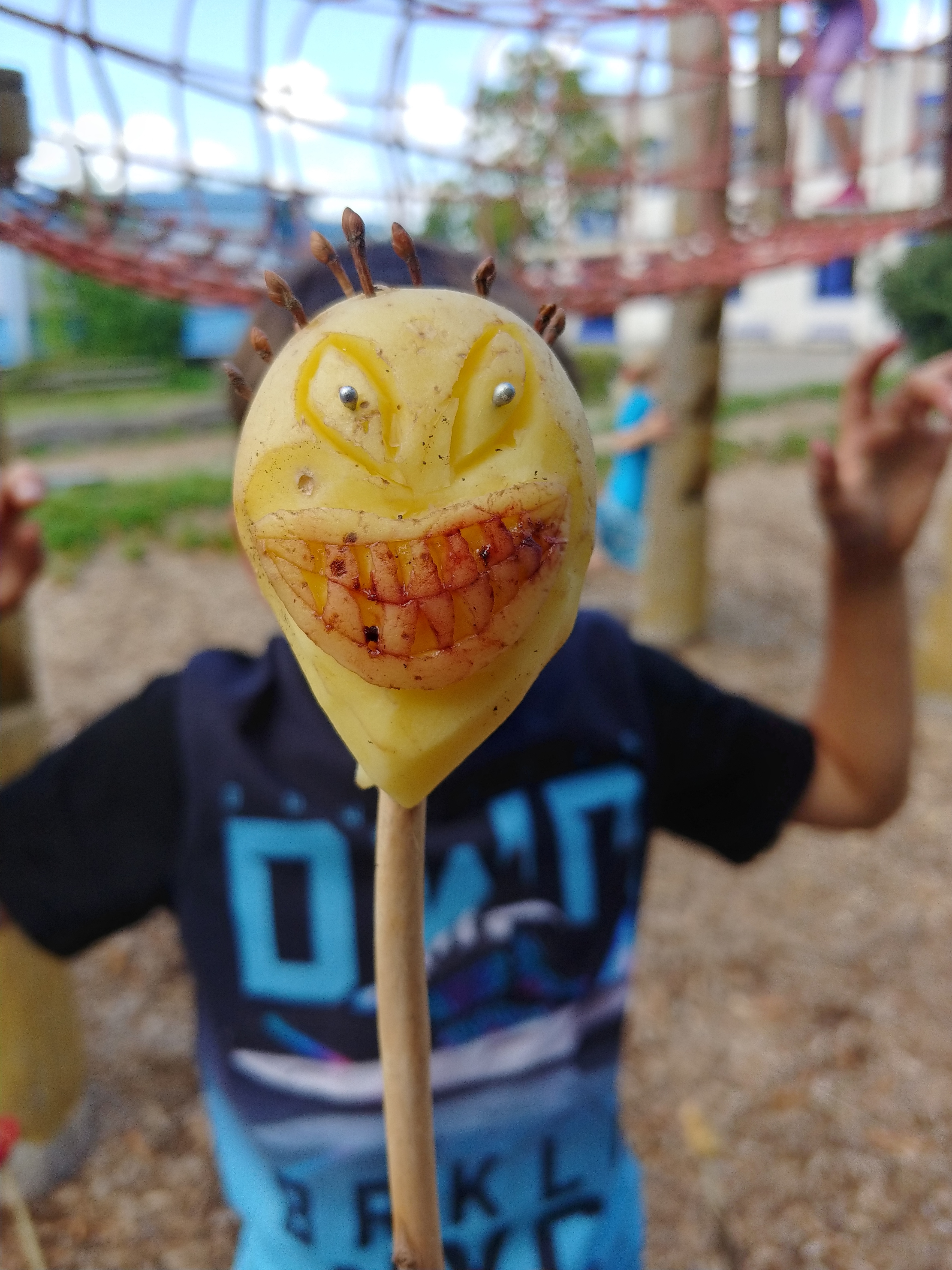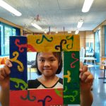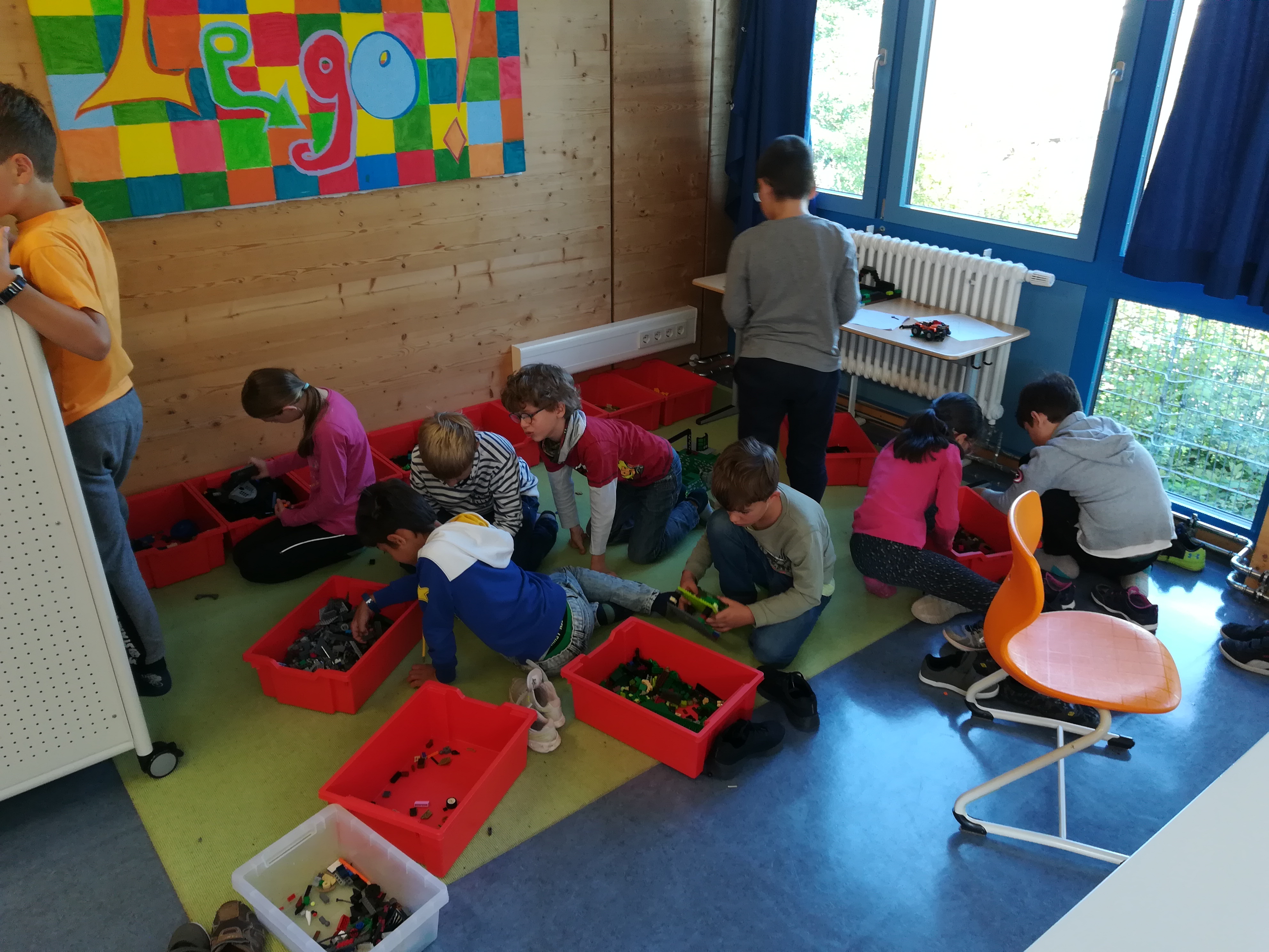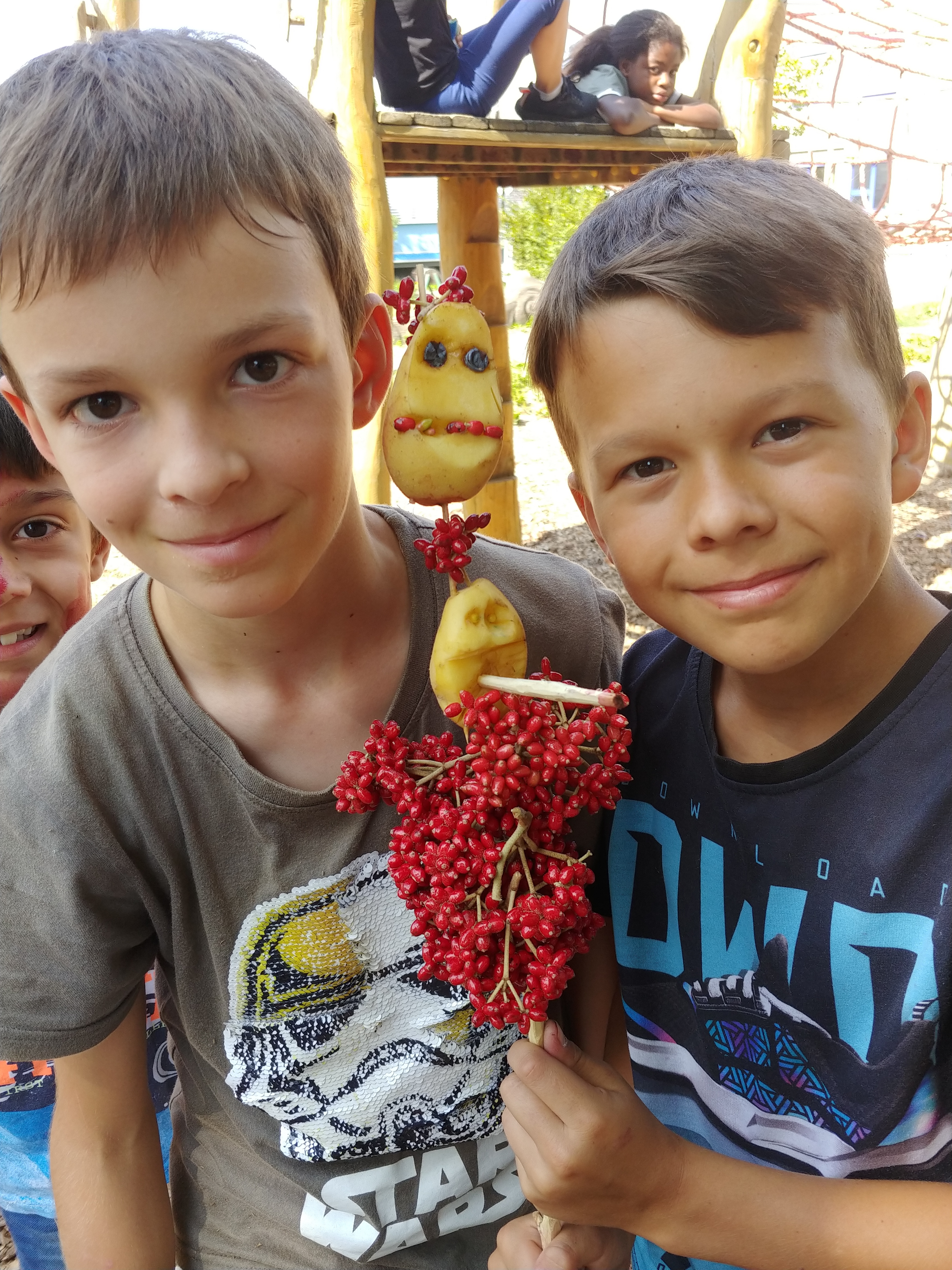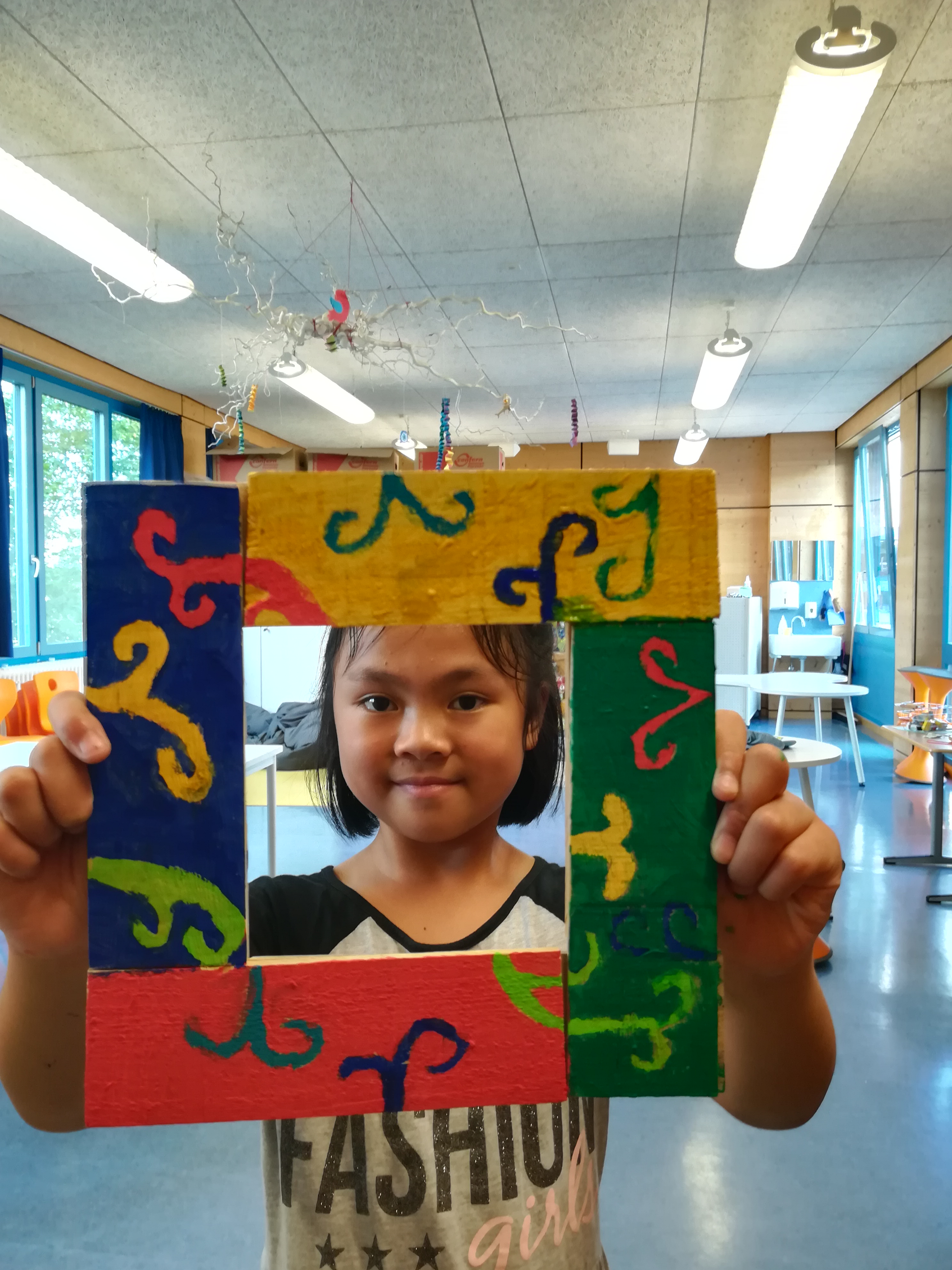 Unter dem Motto „Kreative Auszeit“ lebten sich die Kinder in der Sommerferienbetreuung frei aus. Zu Beginn der Ferien führten die Kinder Farbexperimente durch und sie lernten die verschiedenen Wirkungen der Farben kennen. Blau ist z.B. eine kalte Farbe und Rot erscheint uns warm. Unter Anleitung wurde auch eine Lavalampe aufgebaut und ein farbiger Klebeschleim angerührt, denn sie mit nach Hause nehmen durften. Kreativ mixten die Ferienkinder in der Küche verschiedene Lebensmittel zusammen und kreierten süße und gesunde Leckereien. Diese Leckereien werden Energiekugeln genannt. In der Lego-Ecke des Pavillons filmten die Kinder einen echten „Lego Movie“. Zu Beginn erweckten die Ferienkinder eigene Fantasien und Charaktere zum Leben und bauten diese aus Lego auf. Die Kinder durften allerlei Szenarien und Effekte einbauen wie z.B. ein Autostunt oder ein spektakuläres Rennmanöver. Um möglichst viele Effekte zu realisieren spielten sich die Szenen vor einem grünen Hintergrund ab. Bei den bunten Bilderrahmen konnten die Kinder ihr handwerkliches Geschick unter Beweis stellen indem sie eigene Bilderrahmen aus alten Obstkisten bauten. Hierzu legten die Kinder die grobe Form erst einmal vor sich hin um zu überprüfen ob alle Teile passten. Passte ein Teil mal nicht wurde es ausgetauscht oder auf die passende Länge zugeschnitten. Im Anschluss verleimten die Kinder die Leisten und sicherten sie mit Nägeln. Am Nachmittag verzierten die Ferienkinder ihre Rahmen mit bunten Mustern und sehr viel Kreativität. Wer noch Zeit hatte malte noch ein kleines Bild das dann, sofern der Rahmen schon trocken war, natürlich sofort eingeklebt wurde. Genauso kreativ waren die Ferienkinder in der Nähwerkstatt. Aus bunten Stoffen nähten sie kleine Hüllen für Taschentuchpäckchen. Passgenau und farblich abgestimmt gestalteten die Kinder ein Unikat nach dem anderen. Außerdem stand die Turnhalle für unterschiedlichste Spiele zur Verfügung. Aufbauintensive Spiele wie z.B. Affenfange waren somit möglich. Aber auch an Seilen und Ringen eigneten sich die Kinder akrobatische Fähigkeiten an. Das Schatten-theater zeigt sich bei dem Thema: „Kreative Auszeit“ von einer besten Seite. Spannende und lustige Geschichten über Grüffelo, Meerjungfrauen und co. wurden mit Hilfe von ausgeschnittenen Pappfiguren auf einer beleuchteten Leinwand dargestellt und mit Instrumenten-Geräuschen zum Leben erweckt. Im Lego-Angebot durften die Kinder ihre schönsten Erlebnisse mit Lego nachbauen. Hierbei wurden tolle Fische und Meeresquallen gebaut, ganze Polizeireviere inclusive Gefängnis errichtet oder aber auch eine funktionierende Wildwasserrutsche konstruiert. Da die Auswahl der Steine begrenzt war mussten die Kinder sich absprechen und viel Geschick beim Bauen beweisen was ihnen aber ohne Probleme gelang. Es herrschte ein sehr kreatives Chaos an bunten Steinen aber zum Schluss hatten die Kinder viele tolle Kunstwerke gebaut und die Lego Ecke vorbildlich in Ordnung gebracht. Nicht nur im Schulhaus, sondern auch bei Spaziergängen durften die Kinder kreativ die Natur entdecken und herausfinden was sich aus unterschiedlichsten Naturmateriealien alles herstellen lässt. Besonders das Schnitzen mit dem Taschenmesser begeistere die meisten Kinder. Stöcke wurden gesägt, gespitzt und verziert. Aber auch aus Kartoffeln ließen sich tolle Gruselgesichter schnitzen, die von Tag zu Tag (durch den Zersetzungsprozess) immer gruseliger wurden. Aus Blättern und Beeren bastelten die Kinder wunderbaren Schmuck und, wer hätte das gedacht, malten sogar Bilder mit dem Saft der Beeren. Im Forscherlabor wurde währenddessen an professionellen Fußball-Logos gefeilt und eigene Wappen erstellt. Die Idee war es ein Mannschaftswappen für die Fußballmannschaft der Maria Montessori Schule zu gestalten. Die Ferienkinder arbeiteten hier am Computer mit einem leichten Designprogramm und die Logos sind wirklich gut geworden. Mit Windowcolors tauchten die Kinder die Fenster in der Schule und zuhause in bunte Farben und wenn die Sonne durch die Fenster scheint, dann leuchten diese bunten Bilder. Ein Highlight der Sommerferien war sicherlich das Projekt von Frau Wadle ind er fErienbetreuung, finnziert über die Kulturschule der Maria Montessori Schule. Frau Wadle gestaltete gemeinsam mit den Kindern afrikanische Masken der besonderen Art und brachte viel Phantasie und Freude in die eine Runde und in die sehr kreative Auszeit. Der Projektbericht steht schon auf unserer Homepage und die Kunststücke können drzeit im Schulhasu bweundert werden. Bei schönem Wetter spielten die Kinder auch gerne einfach mal im Freien und freuten sich hier über kleine und fruchtige Überraschungen wie Wassermelonen oder auch mal ein Wassereis. Überhaupt ging es uns allen sehr gut in den Ferien!