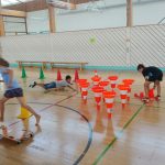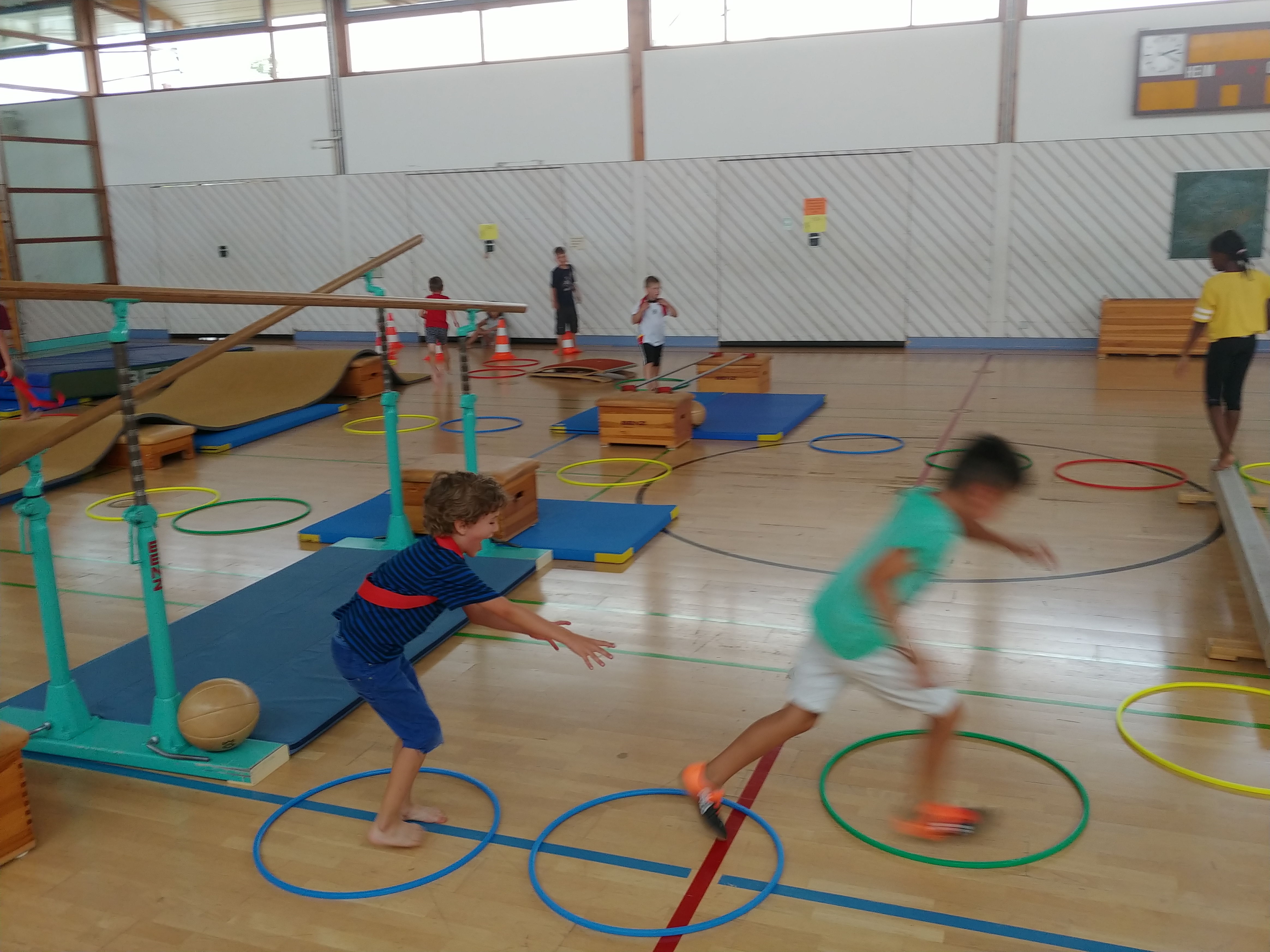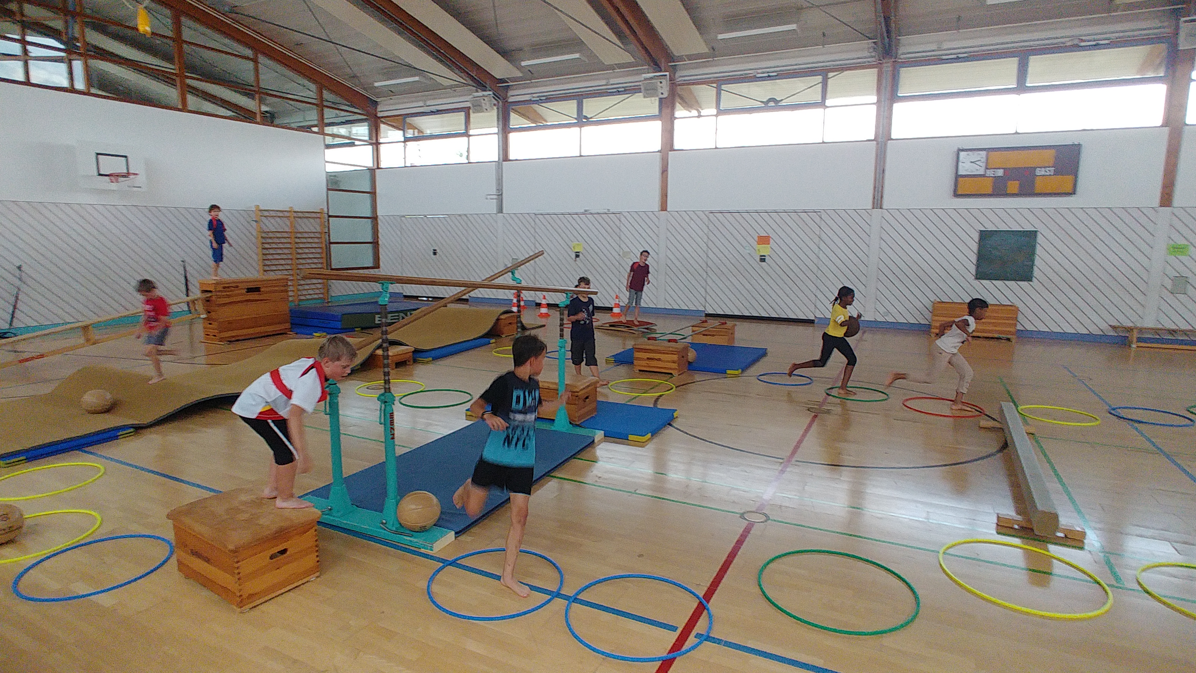 Bewegungsfreudig ging es beim Angebot „Ballsportarten aus aller Welt“ zu. Los ging es mit der beliebtesten Sportart weltweit, natürlich dem Fußball. Diesmal ging es jedoch mehr um das soziale Miteinander als um das Spielen selbst. Durch Übungen wie Doppelpass-Spiel oder auch den Ball in der Luft zu halten, waren alle teilnehmenden Kinder aufeinander angewiesen. Sie mussten miteinander kommunizieren und Abläufe absprechen, damit sie die Übungen gemeinsam meistern konnten. Die Gruppenatmosphäre war sehr angenehm, die Ferienkinder bauten sich gegenseitig auf und motivierten sich, wenn jemand es nicht gleich geschafft hat. Beim Handball und beim Basketball war dies schon schwieriger. Die meisten mussten sich erstmal mit den Spielregeln vertraut machen, um sich dann auf das Spiel bzw. auf das Team einzulassen. Dennoch freuten sich die Kinder über die Aktionen mit dem Ball.