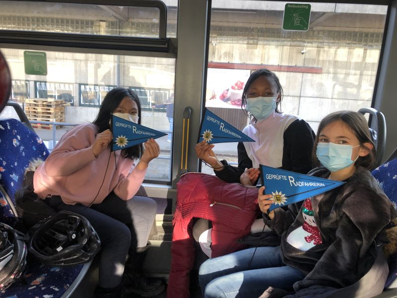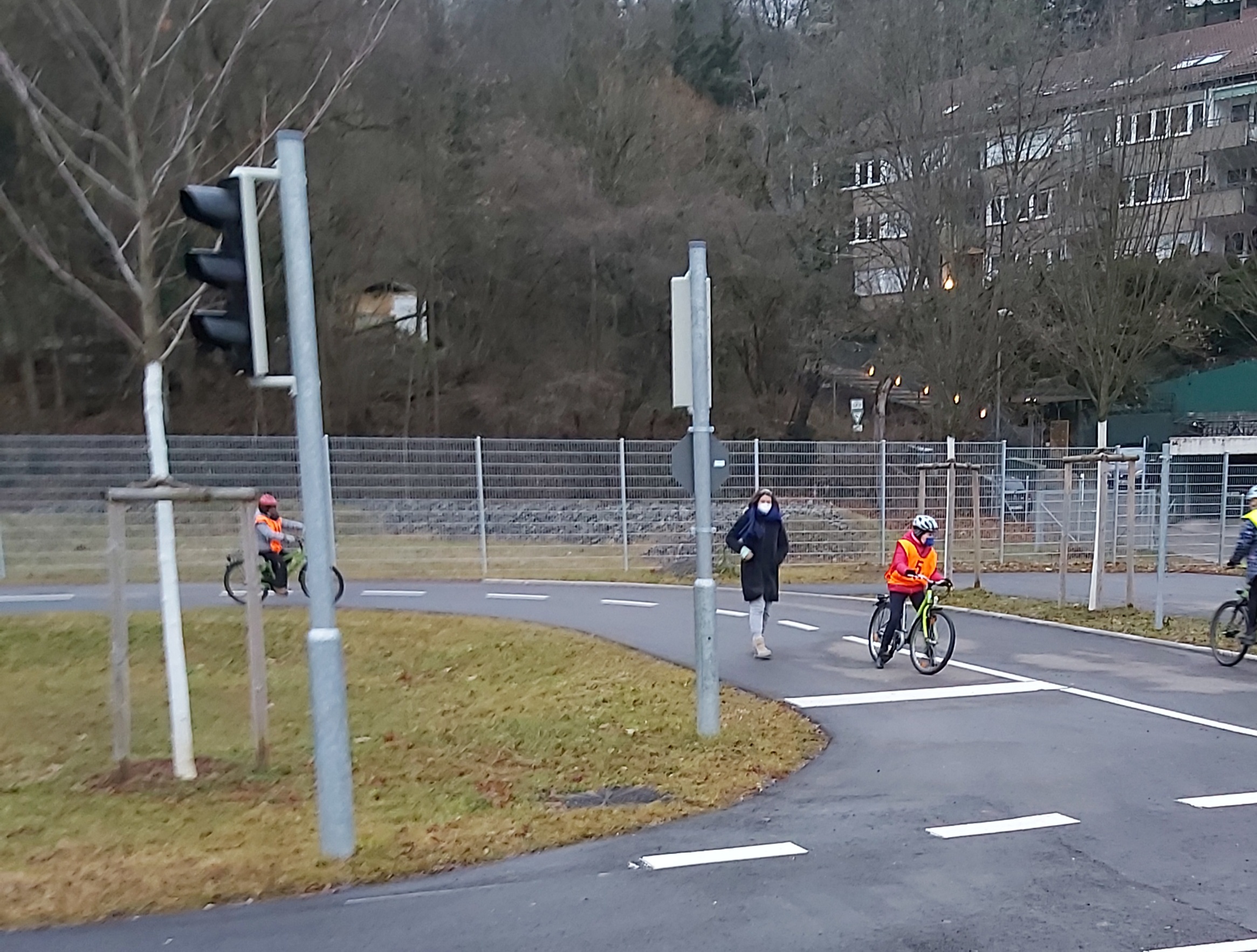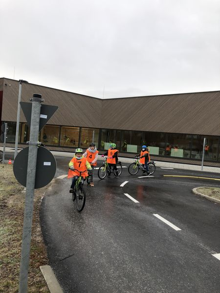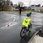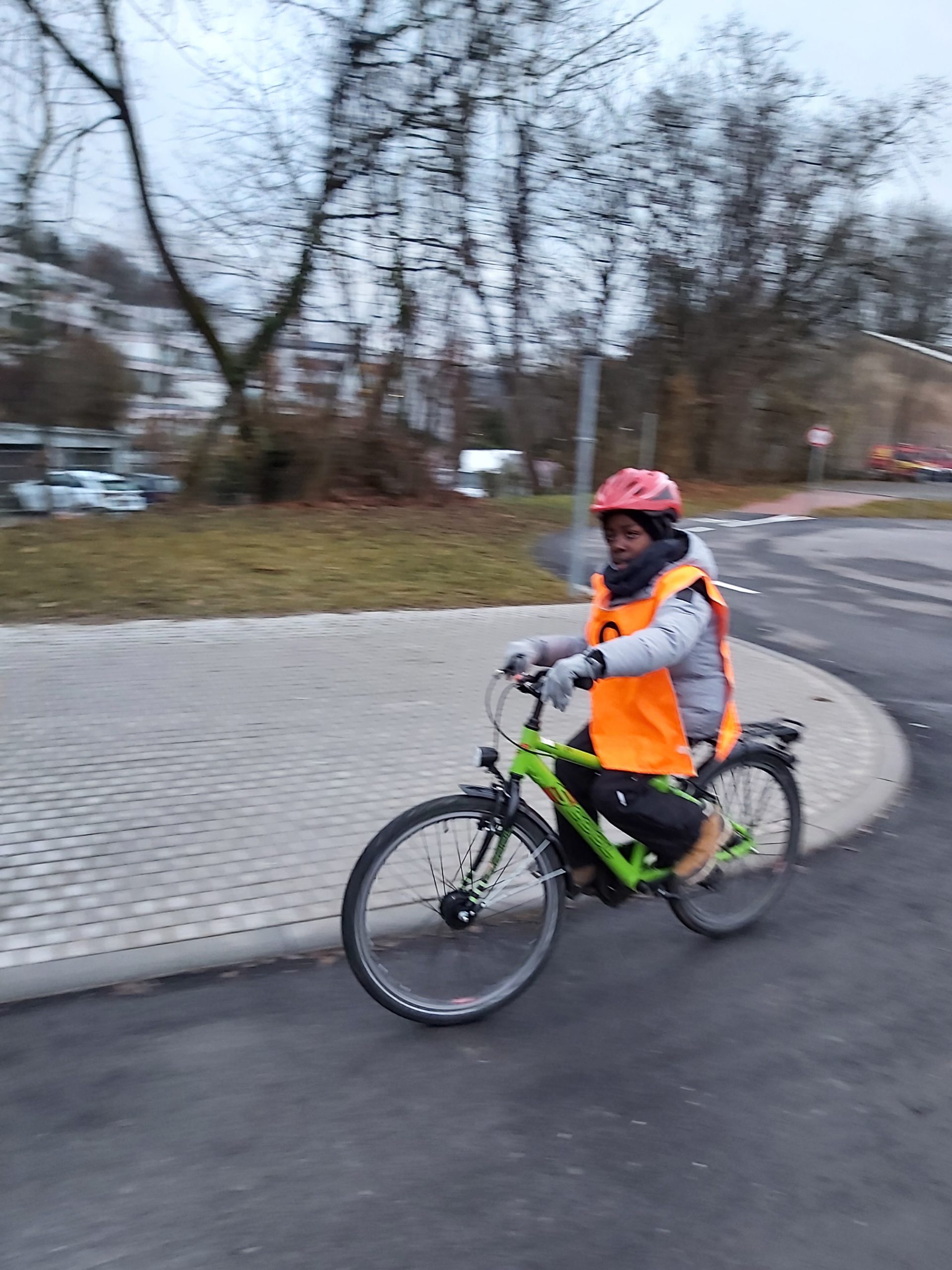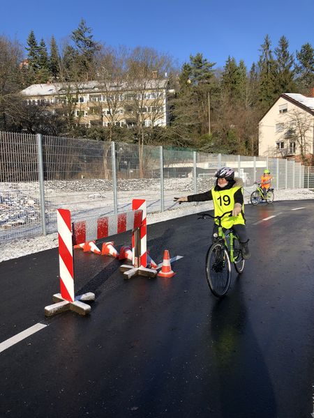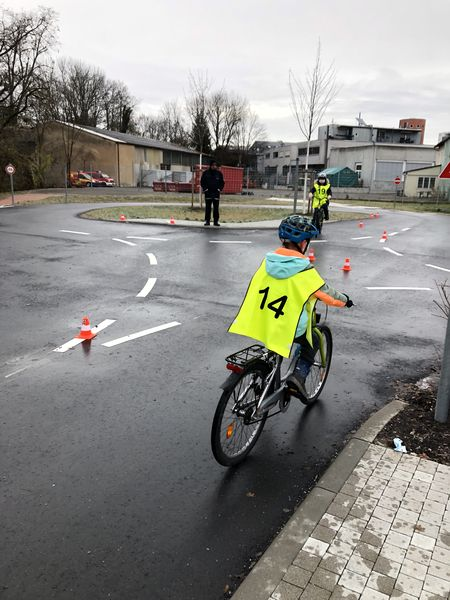 Im November durften alle Schüler*innen ihr eigenes Fahrrad sowie ihren Helm mit in die Schule bringen und eigenständig auf die Verkehrssicherheit hin untersuchen. Anschließend wurde das bisher erworbene Wissen in einem Parcours auf dem Jugendhausplatz in die Praxis umgesetzt. Die Kinder fuhren um Hindernisse, transportierten Gegenstände, bremsten an der Haltelinie und achteten auf die Vorfahrtsregeln.