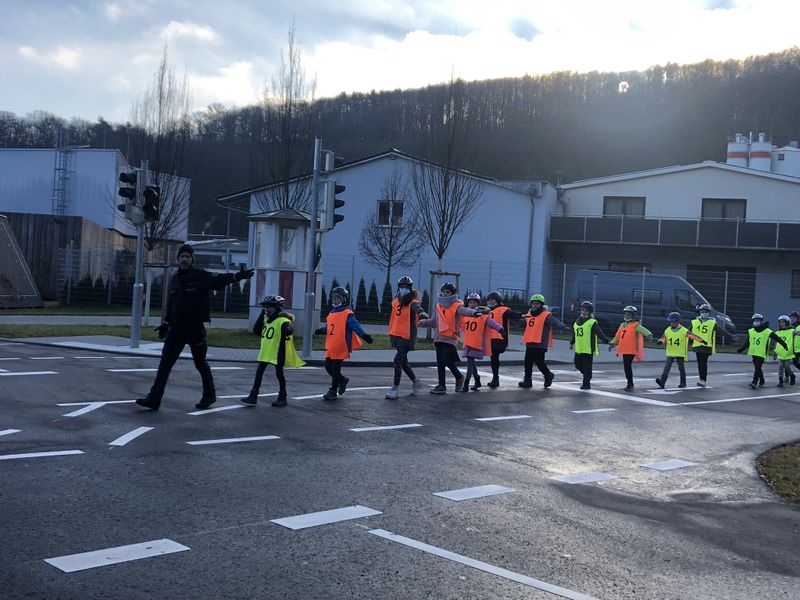 Hier wurde volle Konzentration gefordert. Trotz der kalten Temperaturen hatten alle Kinder viel Freude auf dem Verkehrsübungsplatz und waren beeindruckt von der detaillierten Nachahmung des Straßenverkehrs.