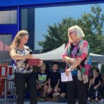 Die nächste Ansprache hielt Schulrätin Claudia Scherer. Auch sie lobte die tolle Theateraufführung. Sie selbst habe den Werdegang von Angelika Müller-Zastrau leider nur kurz begleiten dürfen, da sie noch nicht lange als zuständige Schulrätin tätig sei. Dennoch sei ihr bereits aufgefallen, dass es sich bei der MMGH zwar an sich um eine „ganz normale Schule“ handle. Mit ihrer innovativen Pädagogik habe sie sich aber einen Namen weit über die Grenzen der Stadt hinaus gemacht. Man merke, dass das Team sich an der Erkenntnis orien­tiere, dass sich Kinder völlig unterschiedlich entwickeln und unterschiedliche Lernbedürfnisse haben. Auf diese Bedürfnisse würde man an der MMGH eingehen und jedem Kind den zeitlichen Raum geben, den es benötigt. Der ganzen Schulgemeinschaft sei anzumerken, dass der Leitspruch von Maria Montessori „Lass mir Zeit“ gelebt werde.