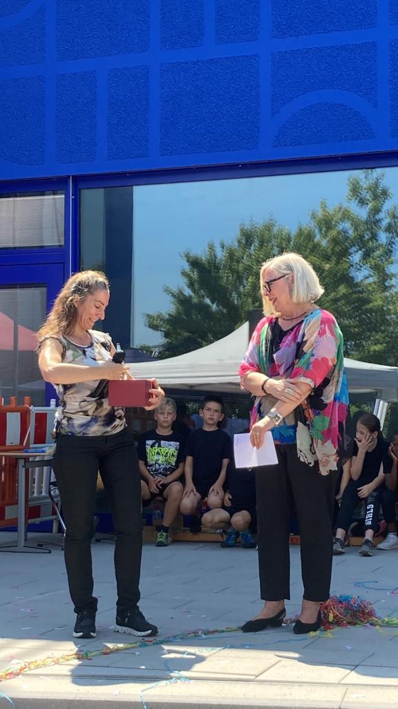 Julia Pappas, die Vorsitzende des Fördervereins zeigte sich tief beeindruckt von der Seele der Schule. Das Montessori-Konzept gebe jedem Kind die Chance, sich in seiner Individualität zu entfalten und zu entwickeln. Dafür benötige es eine engagierte Schulleitung, die die MMGH in Form ihrer Superrektorin zum Glück gehabt hätte. Auch Pappas betonte, dass die Rektorin das Wohl der Kinder stets in den Vordergrund gestellt habe. Doch nicht nur für die Schule habe sich Angelika Müller-Zastrau jederzeit eingesetzt. Auch für den Förderverein sei sie immer wieder die treibende Kraft gewesen und habe ihn des Öfteren vor der Auflösung bewahrt. Dafür gebühre ihr großer Dank, da gerade im Neubau viele Ideen nur durch Mittel des Fördervereins hätten realisiert werden können.