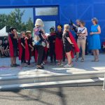 Schließlich flog die Zeitmaschine in die Gegenwart. Dieses Jahr, wie auch die beiden vorhergehenden, war von Schlagworten wie Virus, Notbetreuung, Desinfektionsmittel und Maske geprägt. All dies hatte einschneidende Auswirkung auf den Schulbetrieb und das, nur noch eingeschränkt mögliche, Miteinander der Schulgemeinschaft. Es wurde aber hervorgehoben, dass die Schule, unter der Leitung von Angelika Müller-Zastrau, das Beste aus der belastenden Situation gemacht hat und die Schüler gut durch die Pandemie gebracht wurden. Der Ausblick in die Zukunft war hoffnungsvoll und zuversichtlich, insbesondere geprägt durch die bevorstehende Fertigstellung des neuen Schulgebäudes.