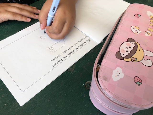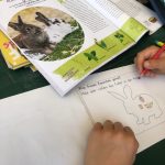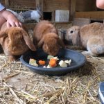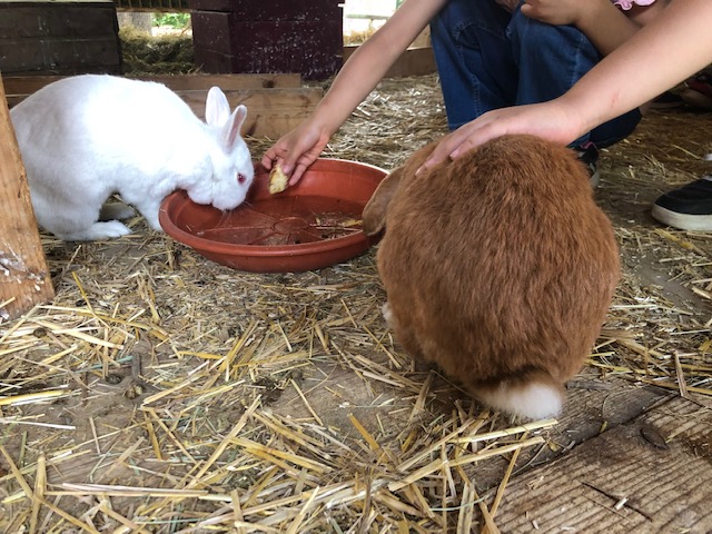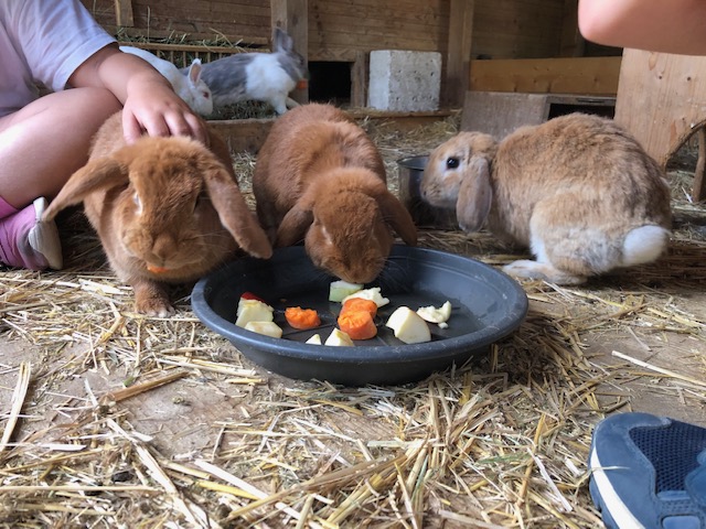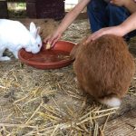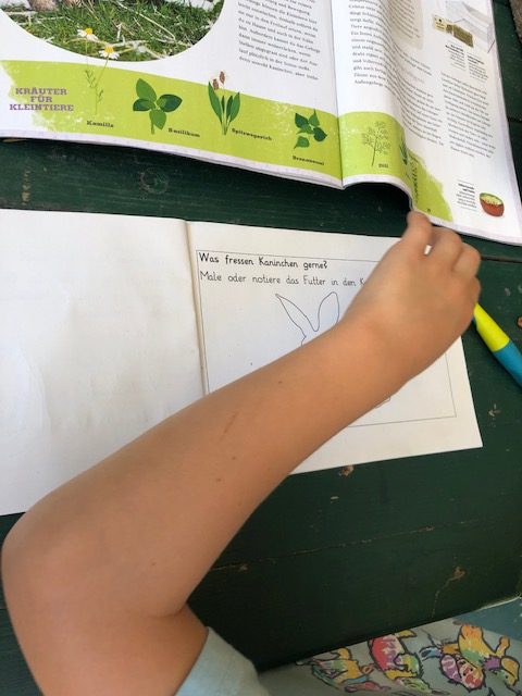 Besonders beliebt, war bei allen Kindern der Aufenthalt im Kaninchenhaus. Die Tiere durften gestreichelt und gefüttert werden. Im Kaninchenheft wurden viele Informationen über die Kleintiere festgehalten.