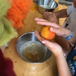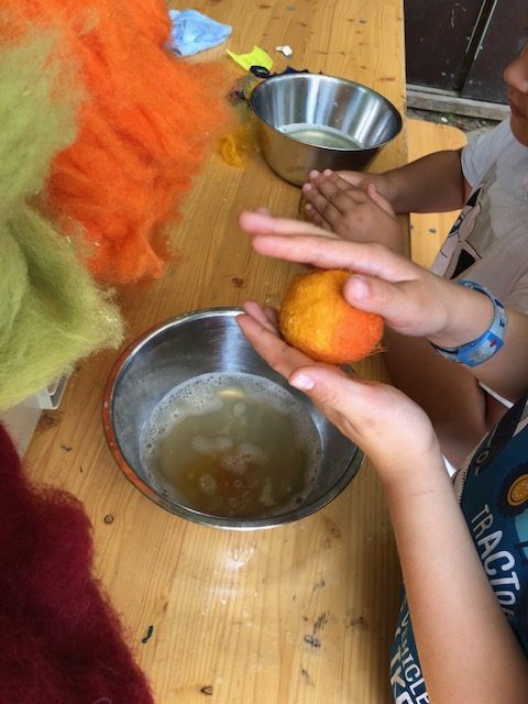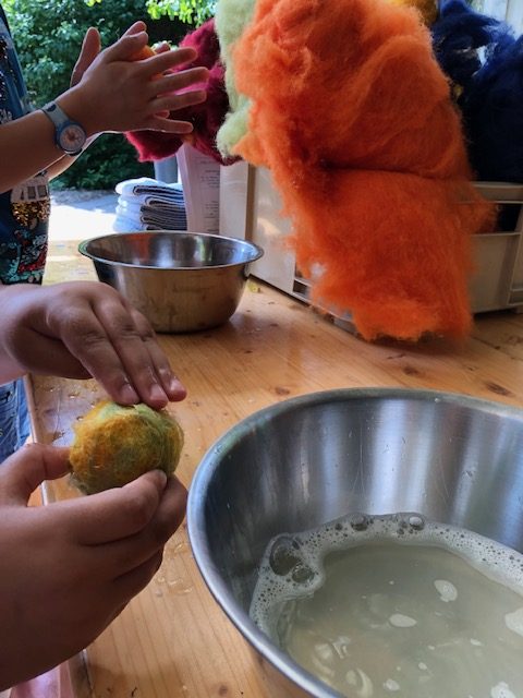 Fleißig wurden Bänder geknüpft und tolle bunte Bälle gefilzt.