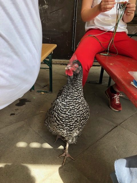 Bei sommerlich, heißen Temperaturen marschierten alle Kinder früh morgens los. Angekommen bei der Jugendfarm mussten sich die Jungs und Mädchen erstmal stärken und ausgiebig vespern.