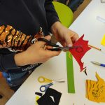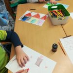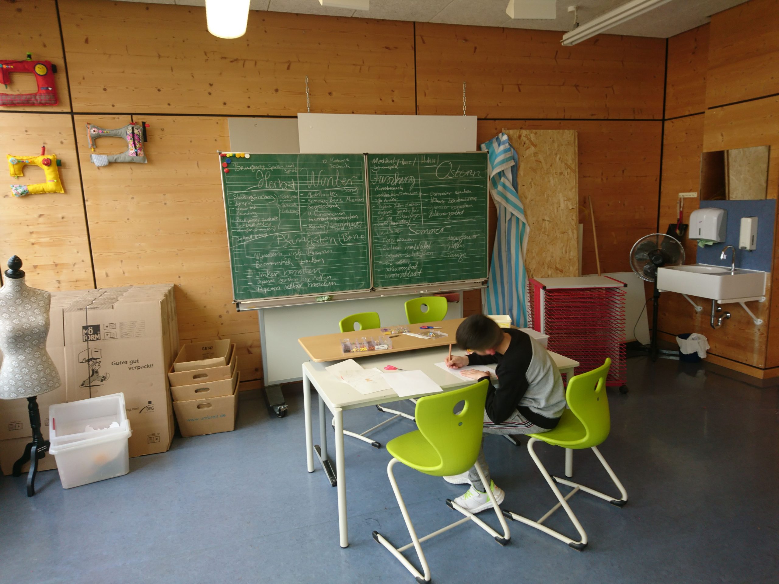 Beim Angebot „Papier-Modedesigner“ von Herrn Hauser wurde der Pavillon zur Designerwerkstatt, in der sich die Kinder der AU-Klassen in junge, kreative Modedesignerinnen und Modedesigner verwandelten. Nach einer kurzen Einführung in das Thema legten die Kinder direkt los: Zunächst schnitten die Kinder ihr „Papp-Model“ aus einer Vorlage aus. Dies erforderte sehr viel Feingefühl, da man an einigen Stellen der Vorlage sehr filigran mit der Schere umgehen musste. Im Anschluss überlegten sich die Kinder, ob sie Frühling-, Sommer-, Herbst oder Wintermode entwerfen möchten. Die meisten entschieden sich – voller Vorfreude – für einen Sommerlook. Nun konnten die Kinder entweder bereits vorgefertigte Kleidungsvorlagen ausmalen oder komplett eigene Kleidungsstücke entwerfen. Nachdem alle Kinder fertig waren, stellten sie sich ihre Ergebnisse gegenseitig vor und sprachen über Unterschiede und Gemeinsamkeiten ihrer Kleidungsstücke.“