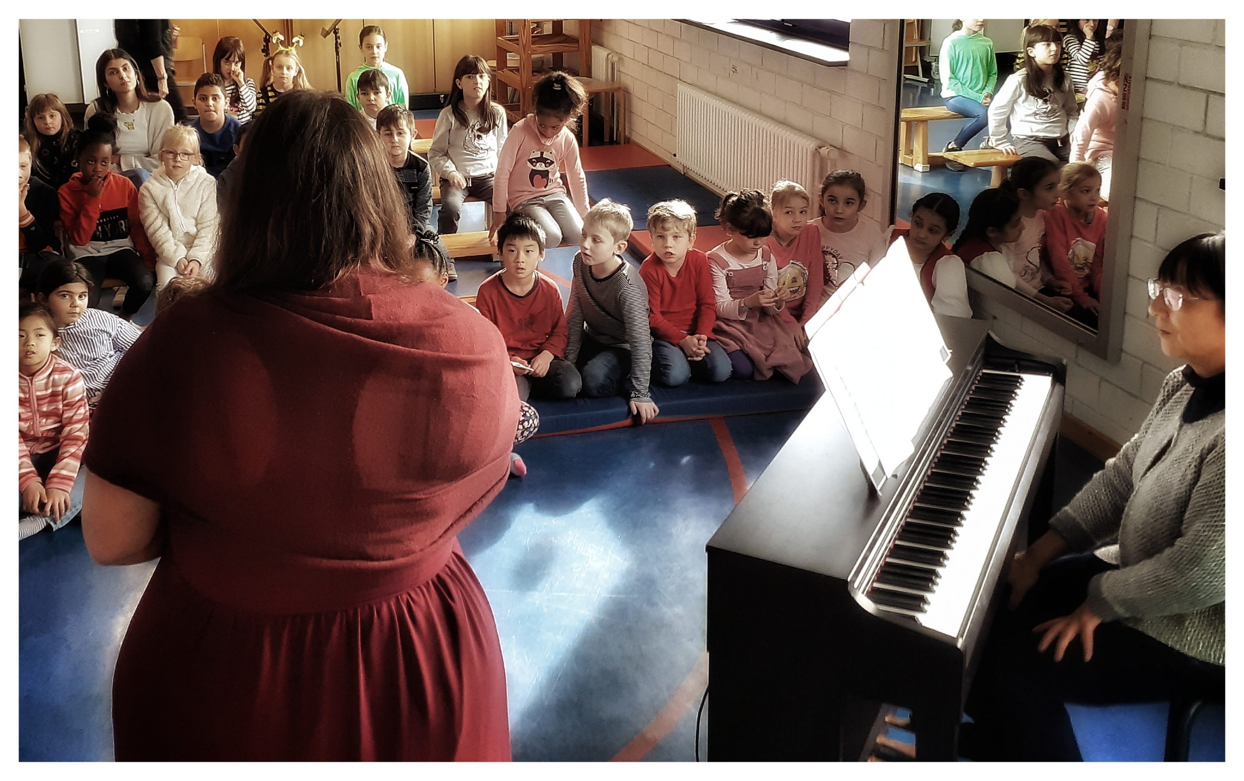 Die Opernsängerin Alessandra und ihre Pianistin Naoko traten vor unseren Ferienkindern im Bewegungsraum auf und präsentierten zwei Arien!