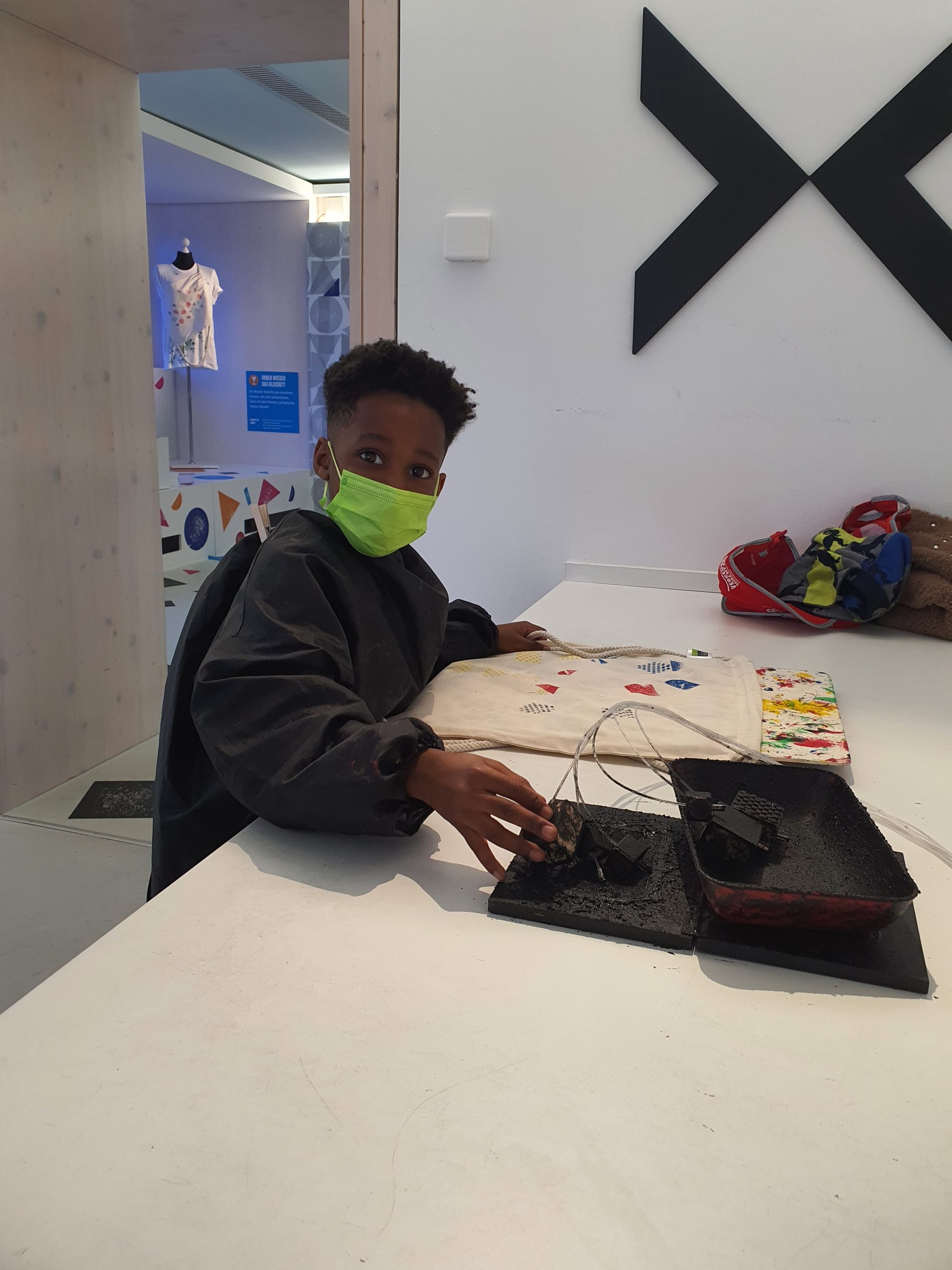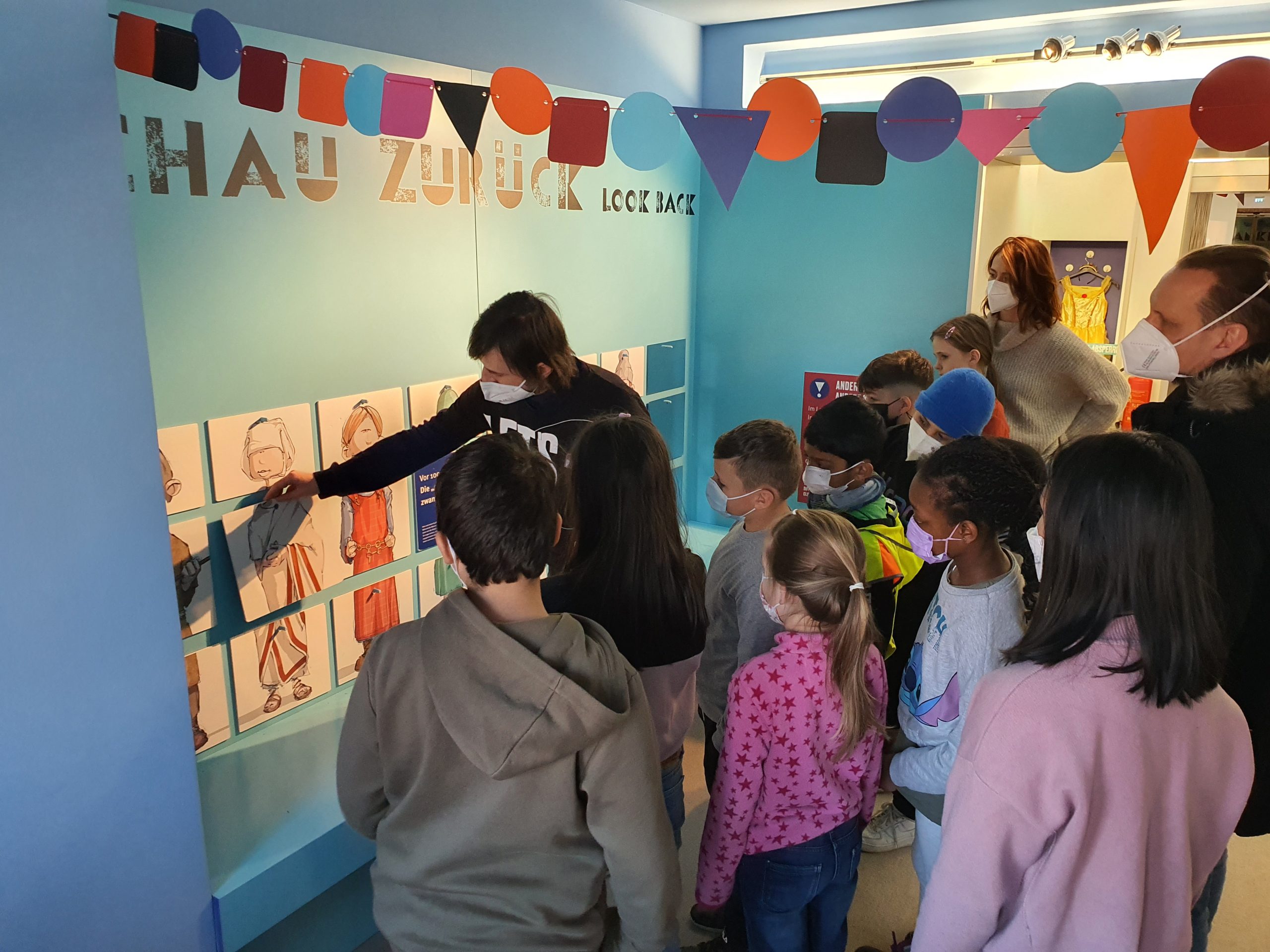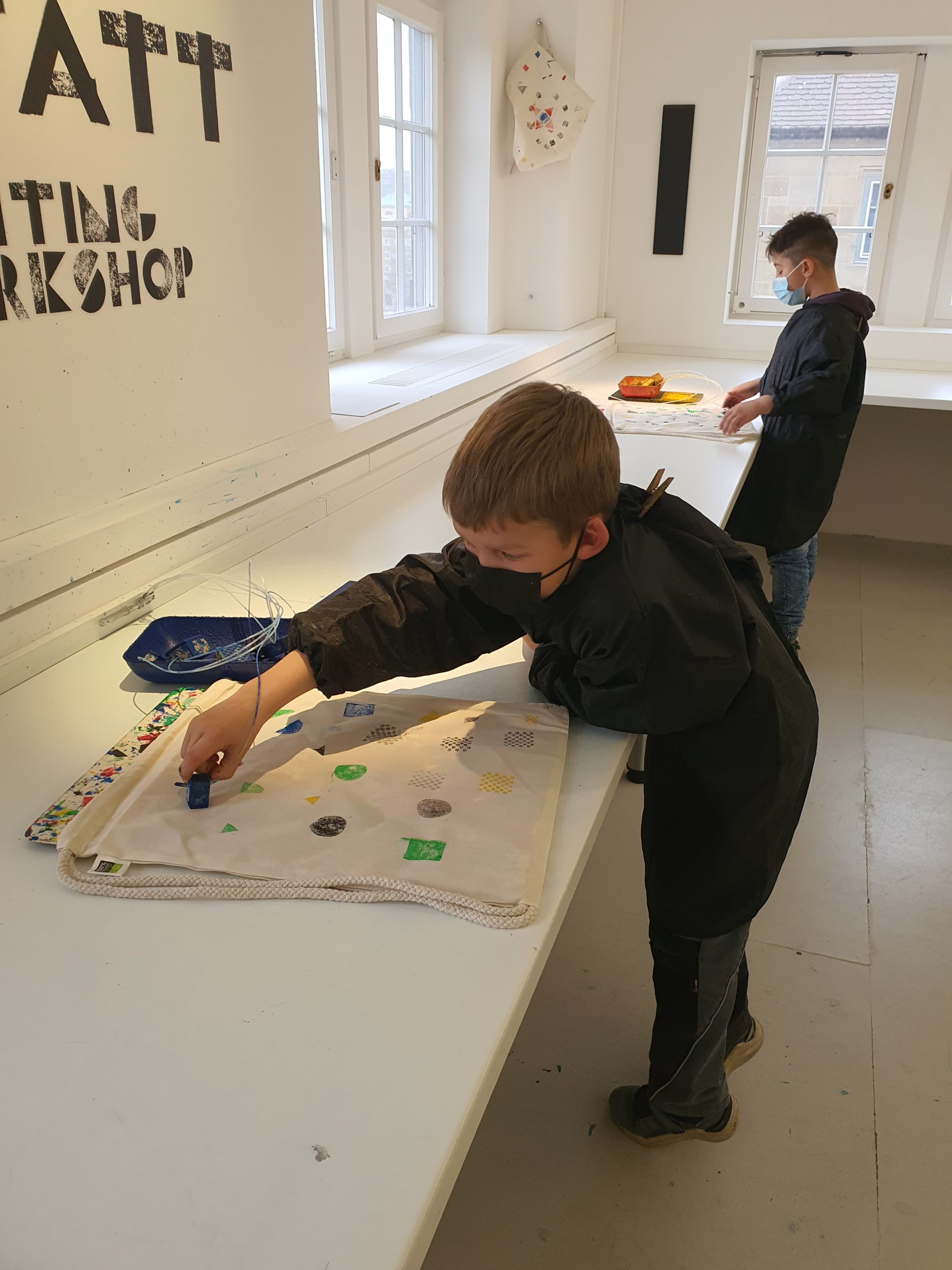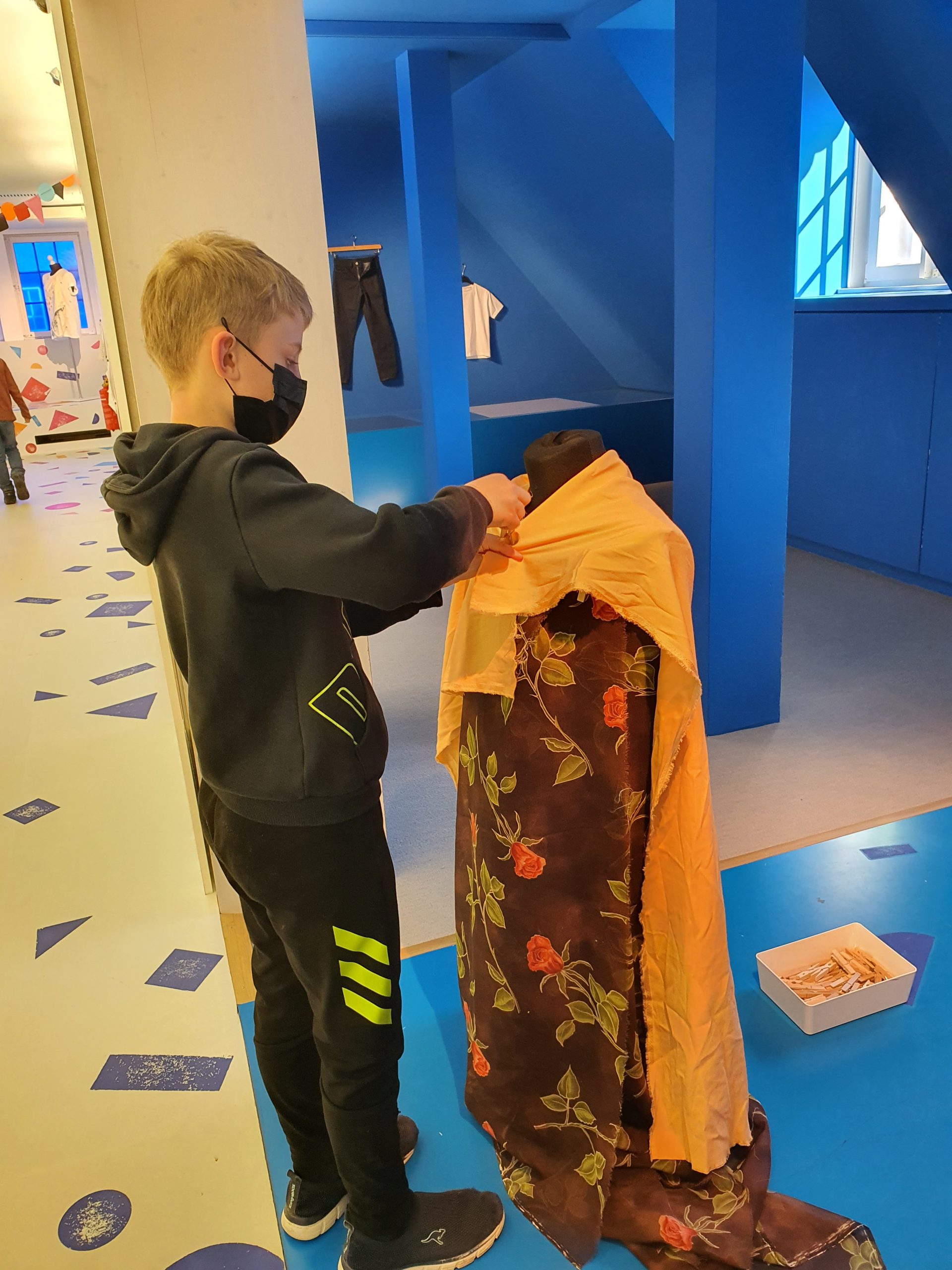 Die vergangenen Faschingsferien standen unter dem Motto „Alles rund um das Thema Mode“. Passend dazu findet derzeit die Mode-Mitmachausstellung „Ran an den Stoff“ im Jungen Schloss statt, die wir mit den Ferienkindern besuchten. Wir waren sehr glücklich darüber, dass wir nach langer Zeit wieder einen Ausflug unternehmen konnten. Im Jungen Schloss angekommen, konnten die Mädchen und Jungen anhand vieler interaktiver Stationen das Thema „Mode“ erleben und lernten dabei Verschiedenes über die Funktion von Kleidung. Ist diese zum Beispiel praktisch, schick oder sogar lebensrettend? Weiter entdeckten die Kinder ganz unterschiedliche Stoffe, deren Herkunft, Produktion und Pflege. Als krönenden Abschluss konnten die Ferienkinder noch ihren eigenen Stoffbeutel bedrucken. Bei schönem Wetter ging dir Gruppe anschließend noch auf den Spielplatz.