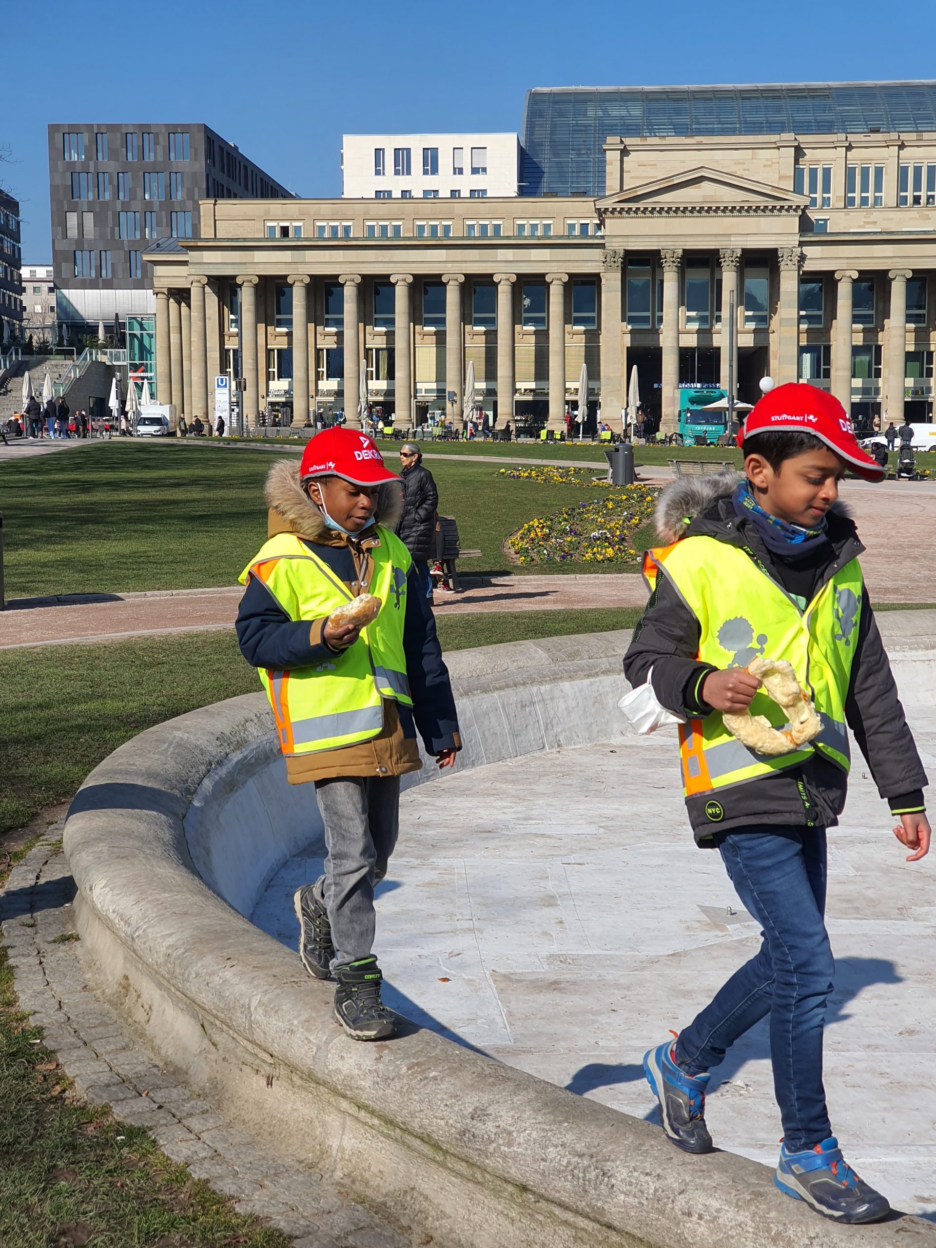 Nachdem wir mit Bus und U-Bahn an der Bowling-Arena in Feuerbach angekommen waren, hatten die Kinder zunächst die Möglichkeit zu frühstücken. Im Anschluss mussten wir unsere Straßenschuhe ausziehen und für spezielle Bowlingschuhe eintauschen. Nach einer kurzen Einweisung durch eine Mitarbeiterin konnte es dann auch schon direkt losgehen. Da an jeder Bahn höchsten fünf Kinder spielten, hatten wir die Möglichkeit, zwei Spiele mit jeweils 10 Runden zu spielen. Für Kinder die das erste Mal Bowling spielten, konnte an der Bahn eine zusätzliche Bande aktiviert werden, sodass der Spielspaß für alle gegeben war. Nach zwei Stunden machten wir uns wieder auf den Rückweg, wo in der Schule bereits das Mittagessen auf uns wartete.