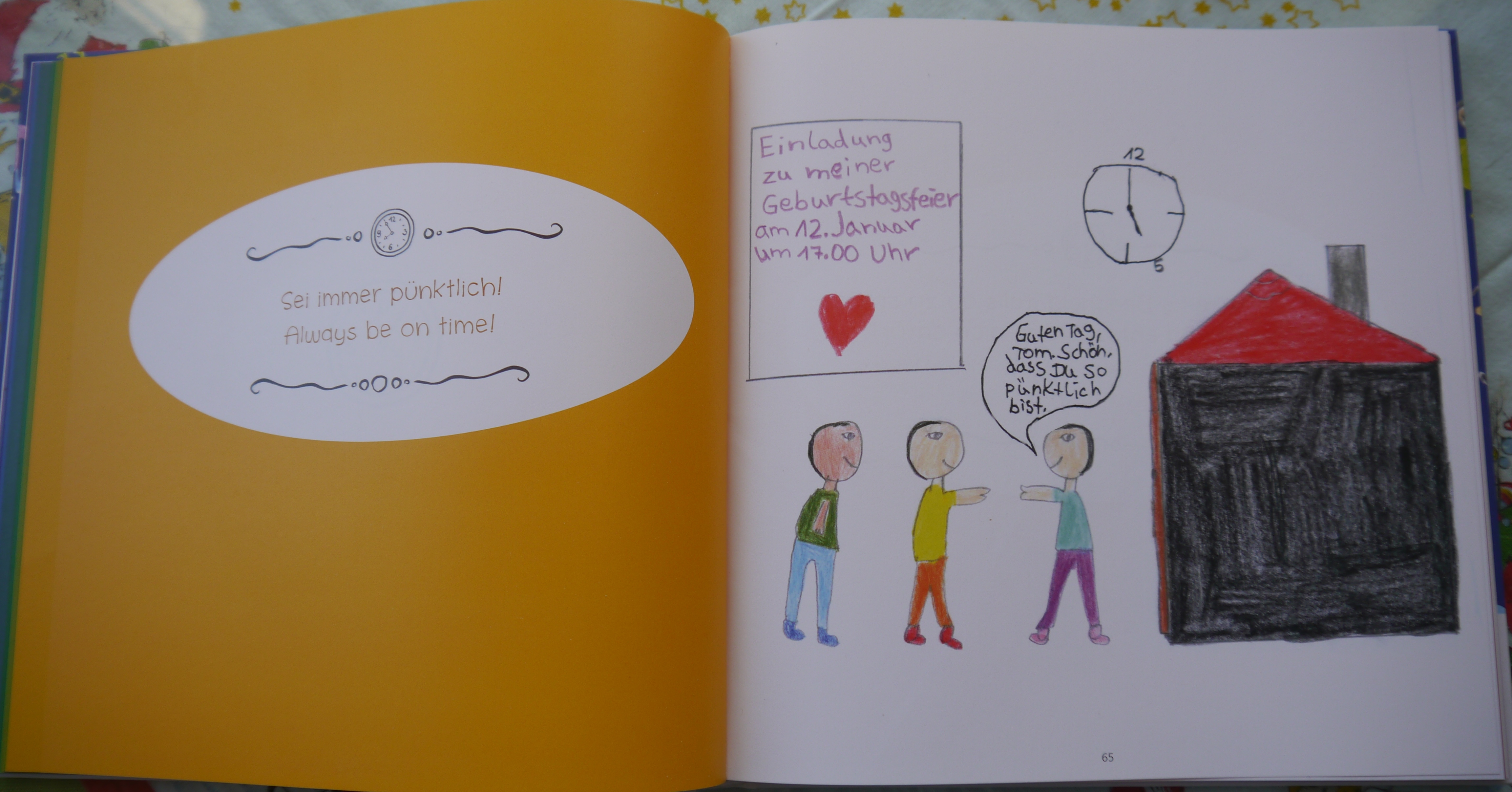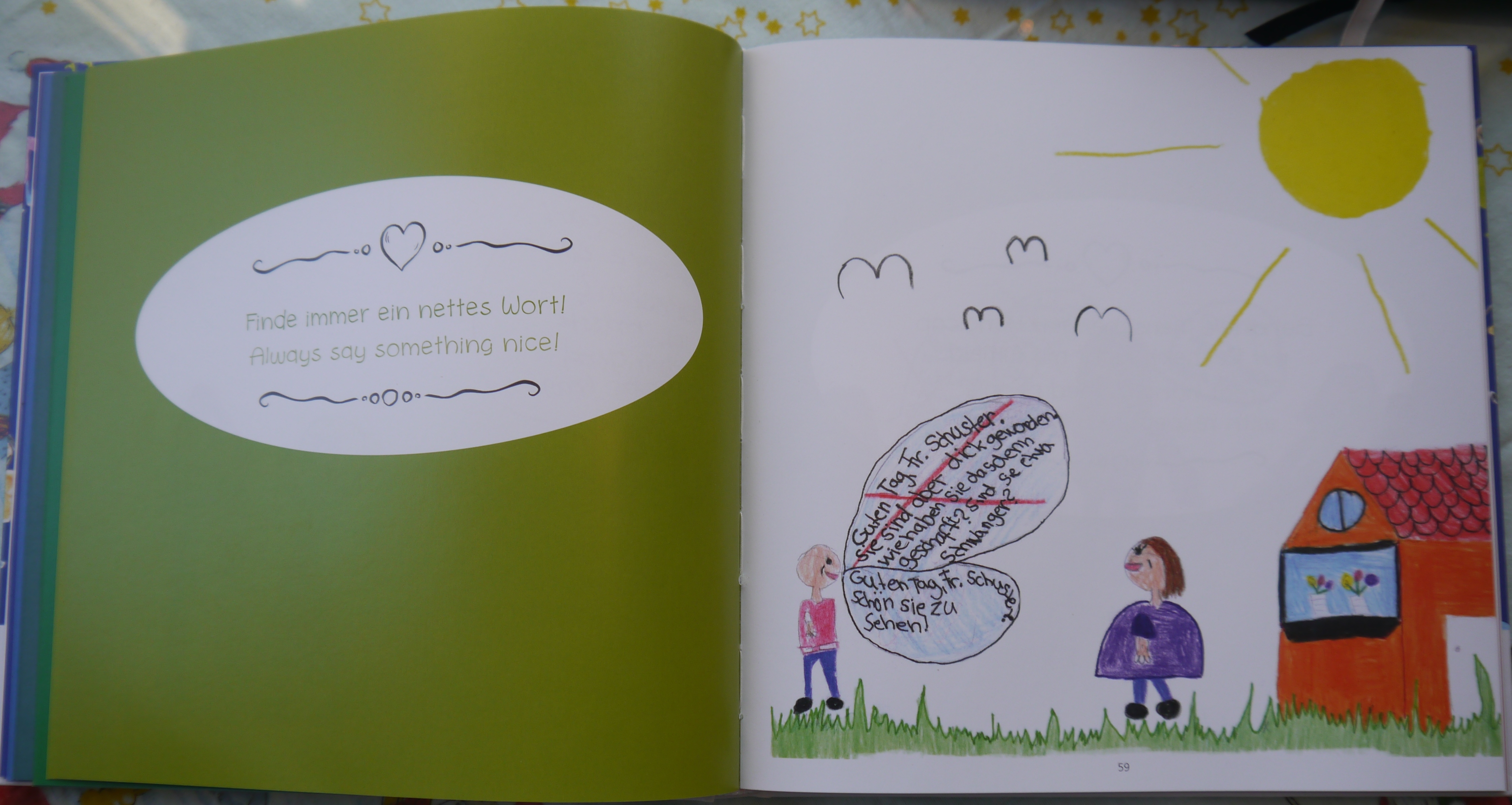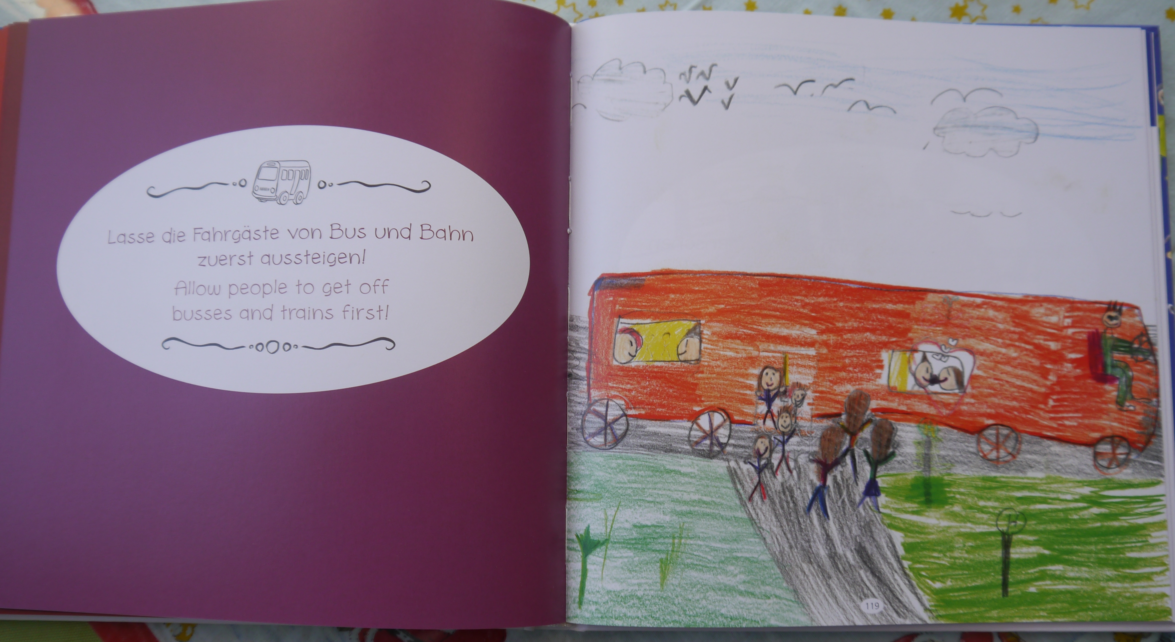 Gut ankommen, wer möchte das nicht? Dabei ist das ganz einfach! Schon die beiden Worte ‚bitte‘ und ‚danke‘ öffnen die Tür in die Welt der Höflichkeit. Wer mehr über ‚gutes Ankommen‘ beim Essen, bei Einladungen oder auch in Bus und Bahn wissen möchte, für den ist dieses Büchlein genau richtig. Einfache und kurze Texte, die auch auf Englisch zu lesen sind, beschreiben das gewünschte Verhalten. Die vielen bunten Kinderzeichnungen zu insgesamt zehn verschiedenen Lebensbereichen veranschaulichen nicht nur die beschriebenen Alltagssituationen, sondern regen zum Schmunzeln an und zaubern dem Betrachter ganz unwillkürlich ein Lächeln ins Gesicht.