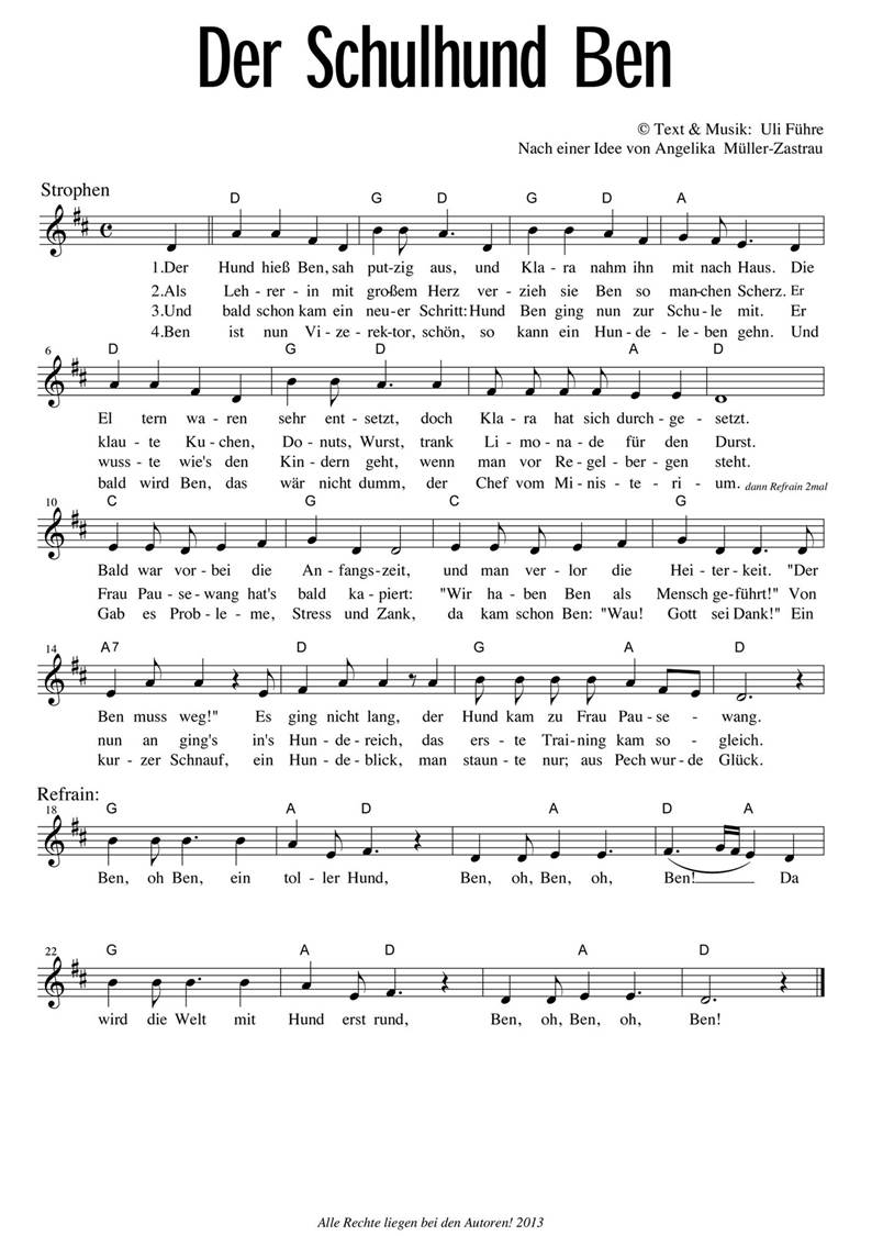Hier ist das Ben-Lied gesungen von Uli Führe und hier ist es als Playback zum selbst-singen.